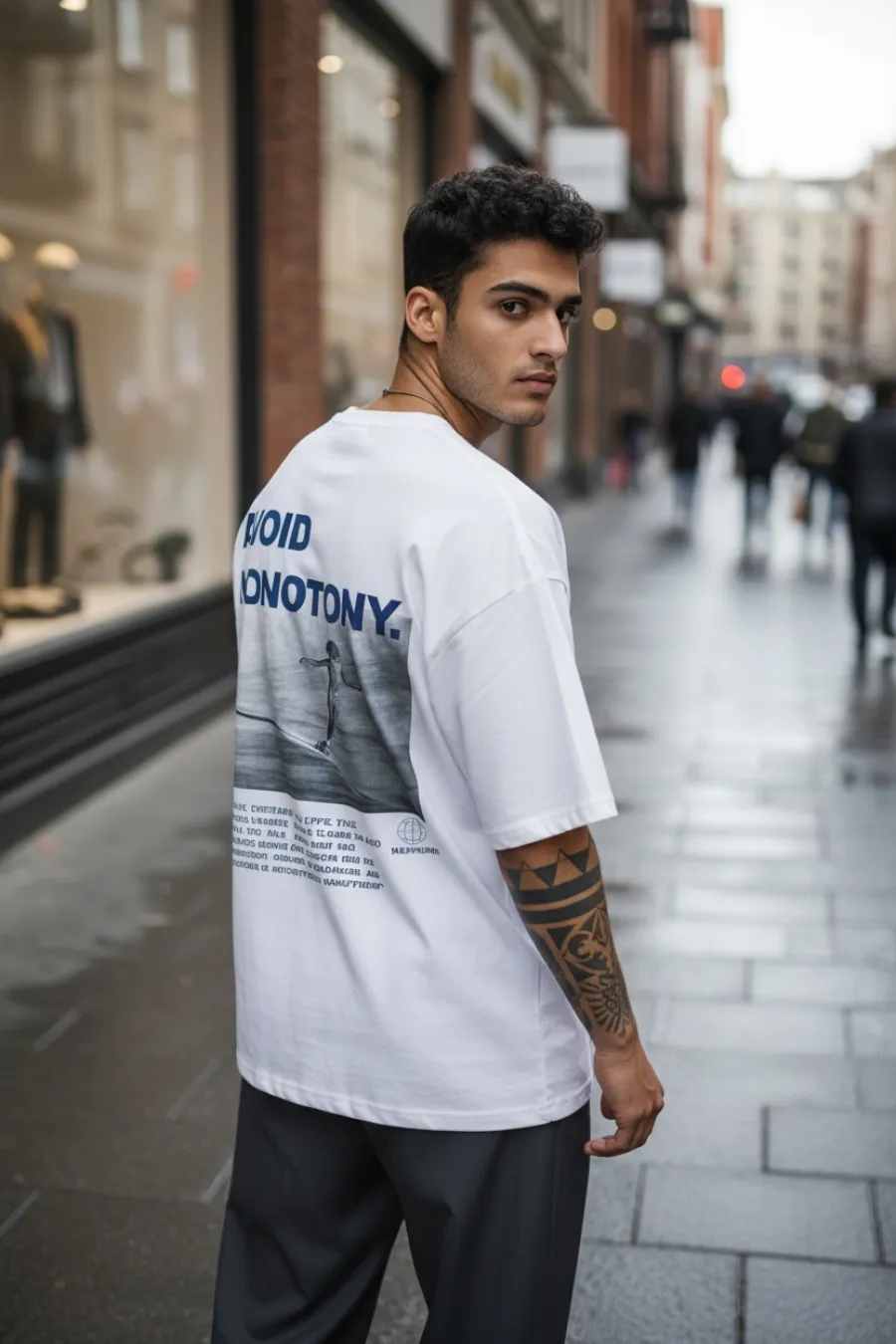 Tricou barbati alb, cu imprimeu pe spate, oversize 11819 O1-3.3