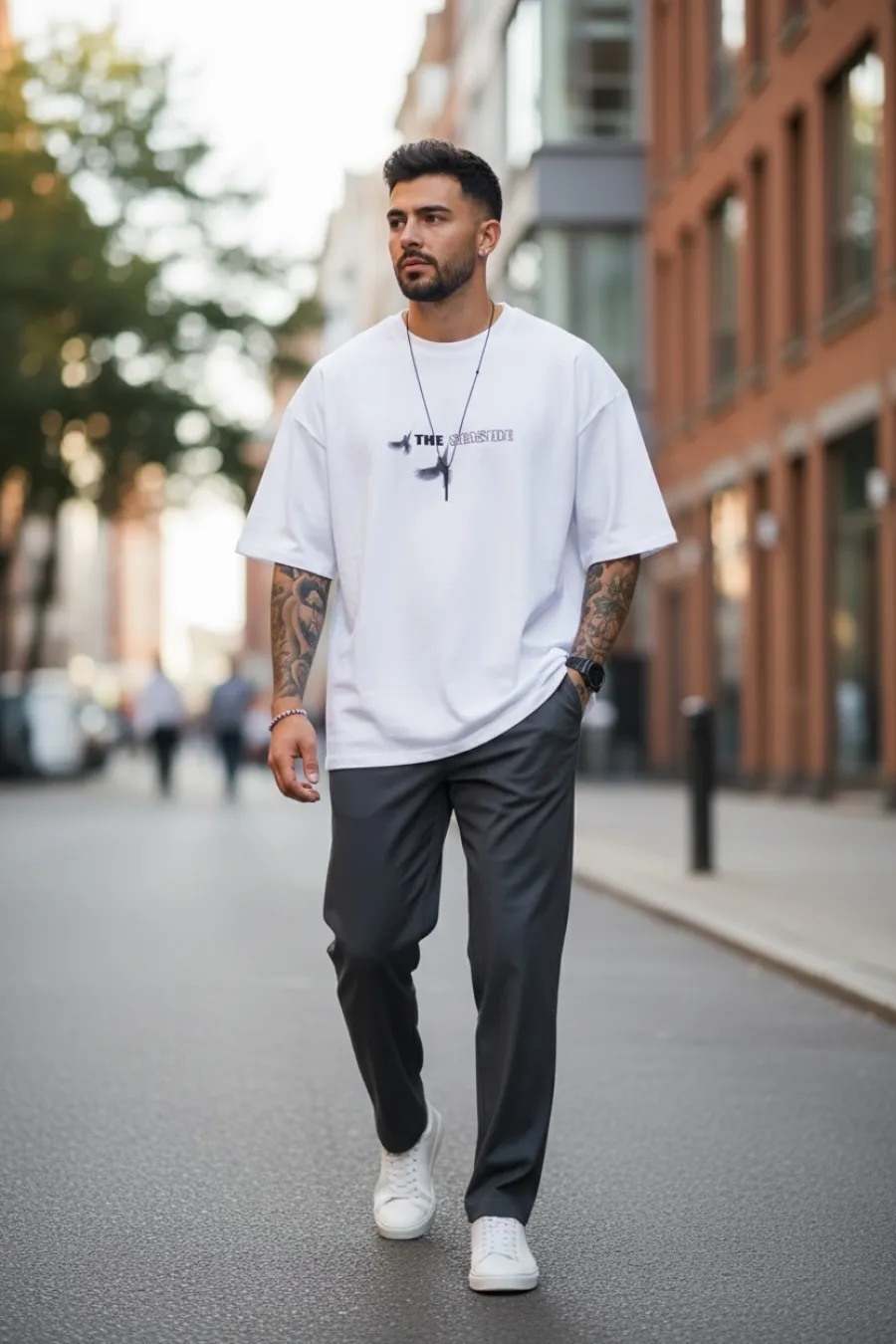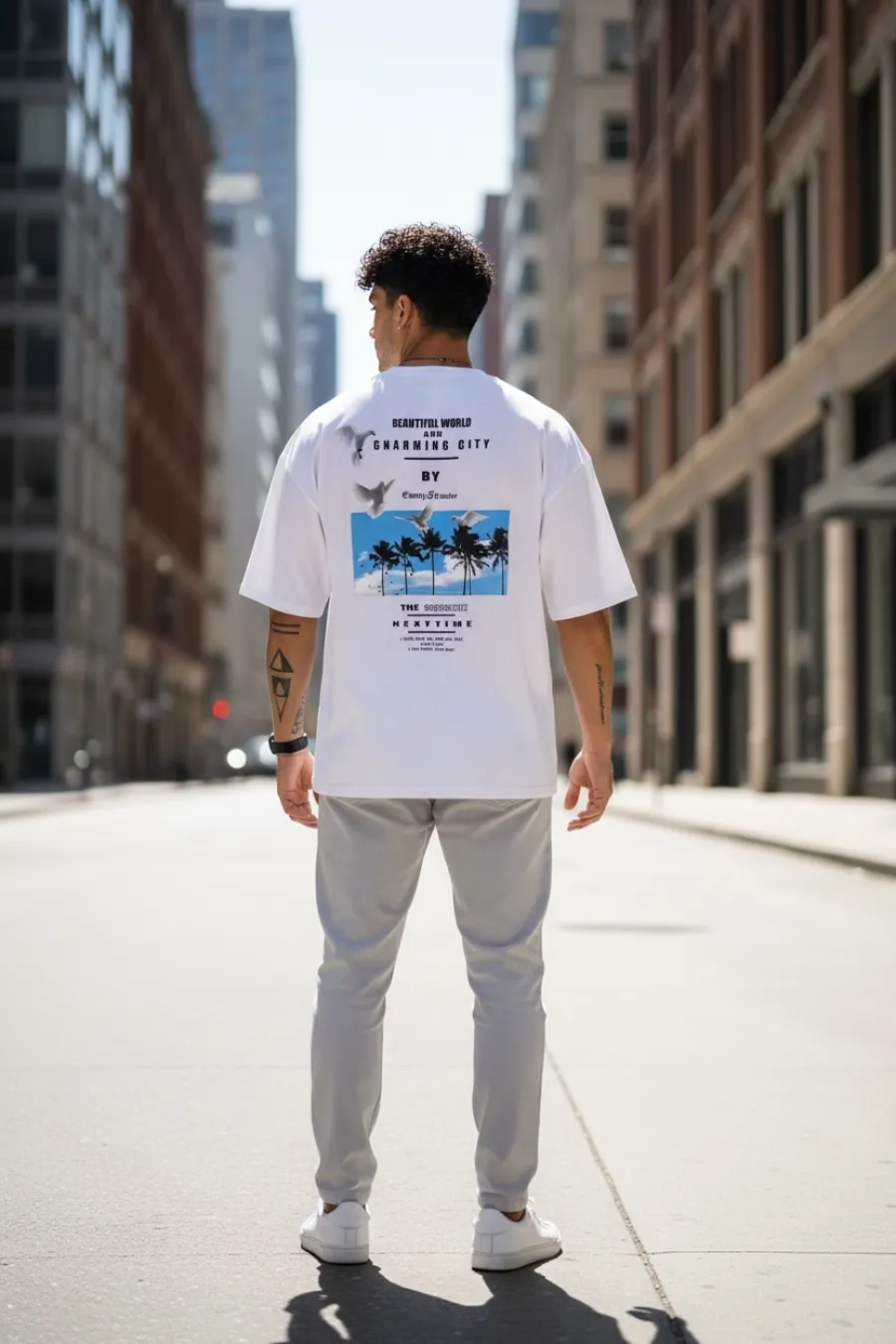 Tricou barbati alb, cu imprimeu pe spate, oversize 11820 P19-6.3