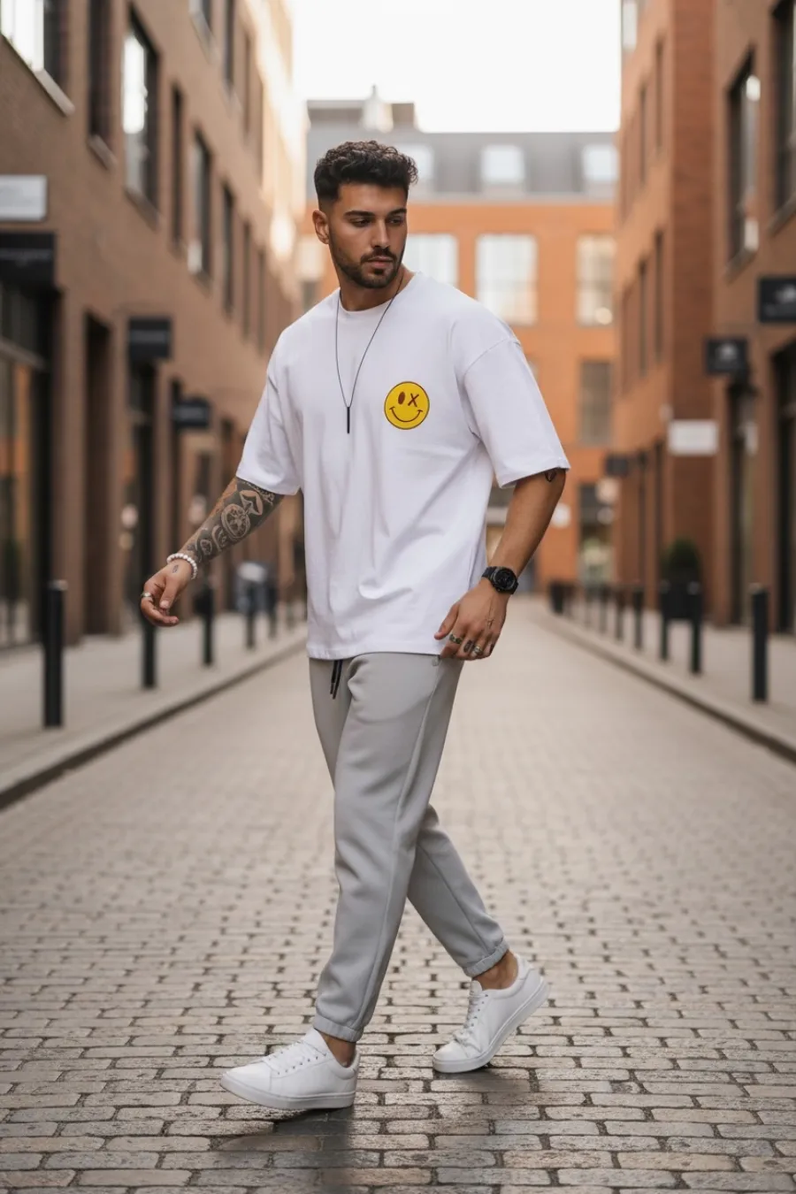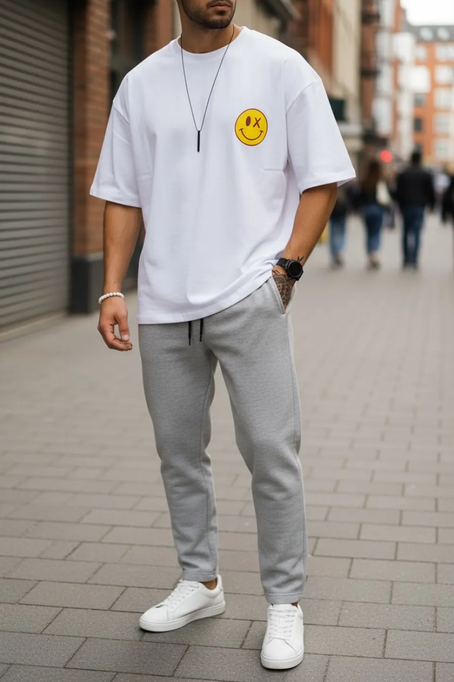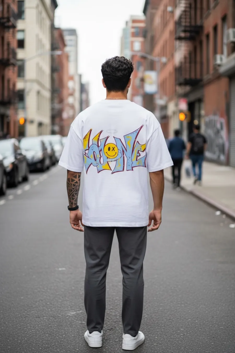 Tricou barbati alb, cu imprimeu pe spate, oversize 11824 D7-2