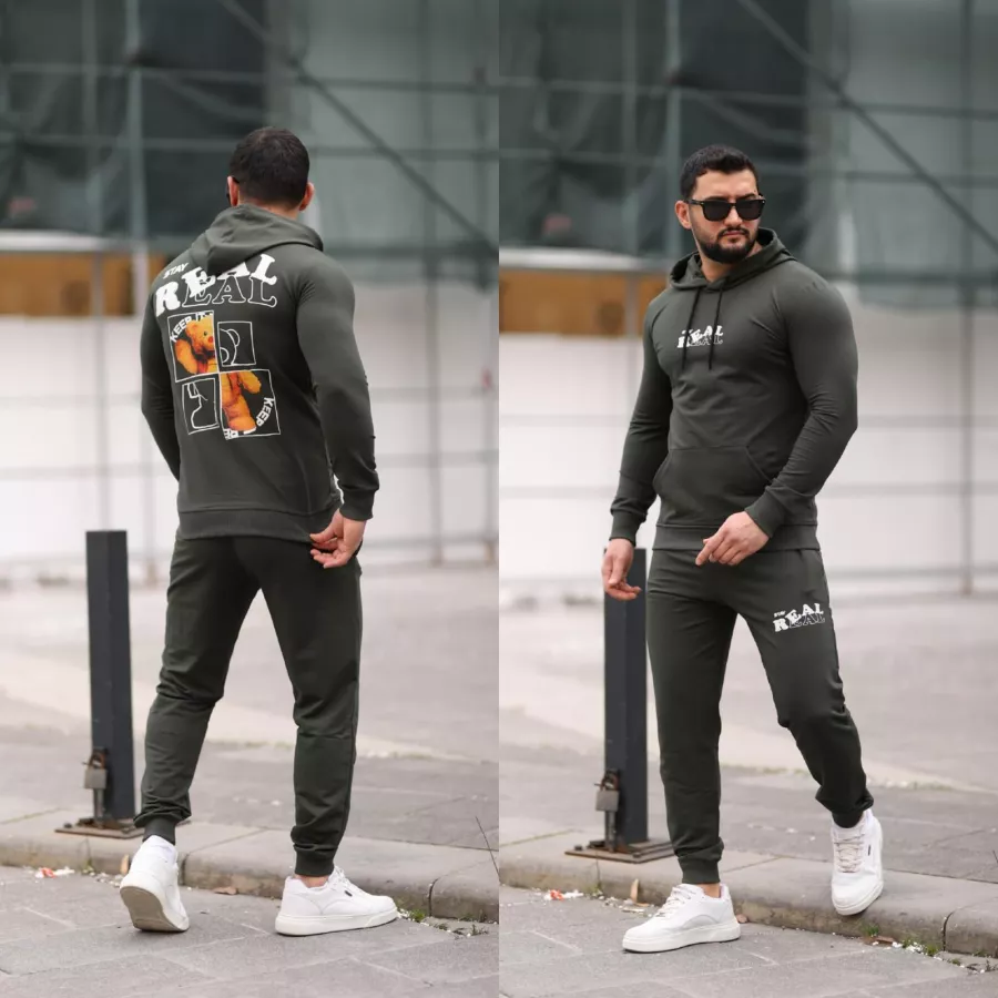 Trening barbati slim fit kaki, Pantaloni + Hanorac, 13354