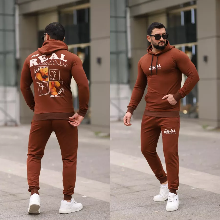 Trening barbati slim fit maro, Pantaloni + Hanorac, 13354