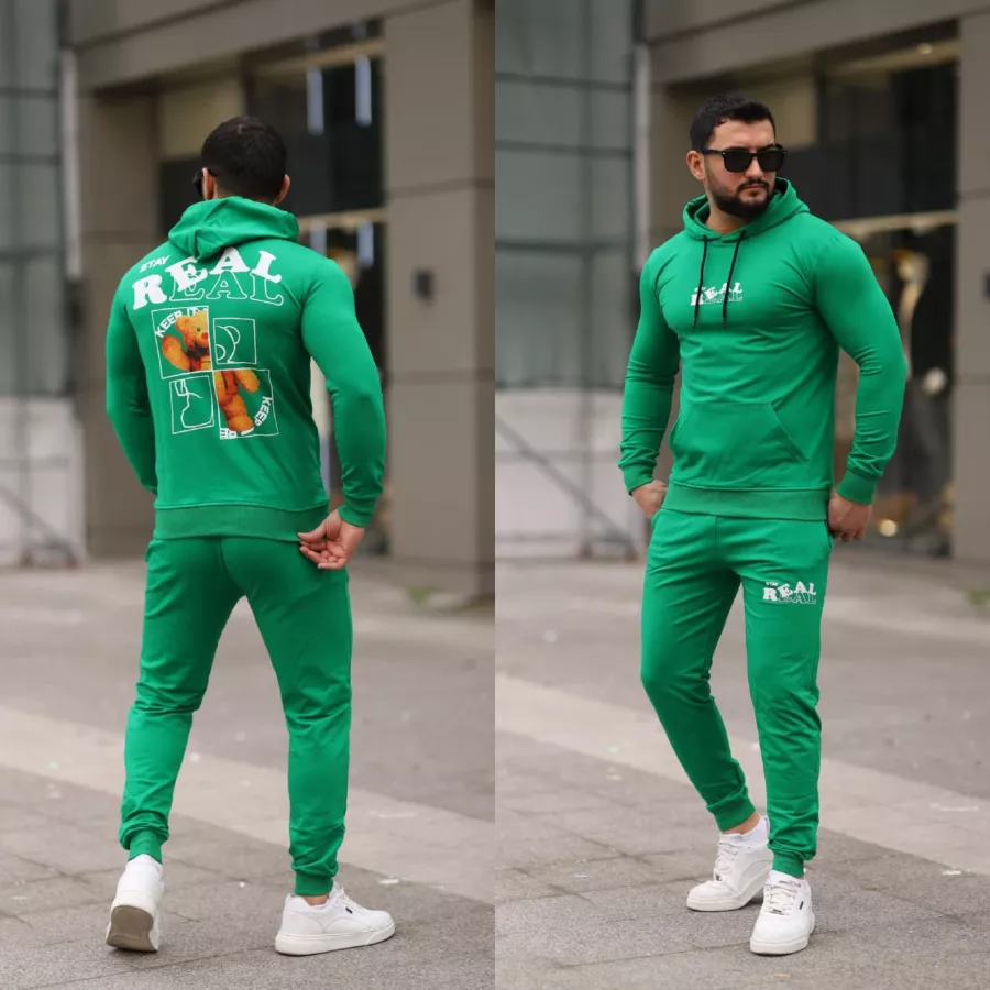 Trening barbati slim fit verde, Pantaloni + Hanorac, 13354