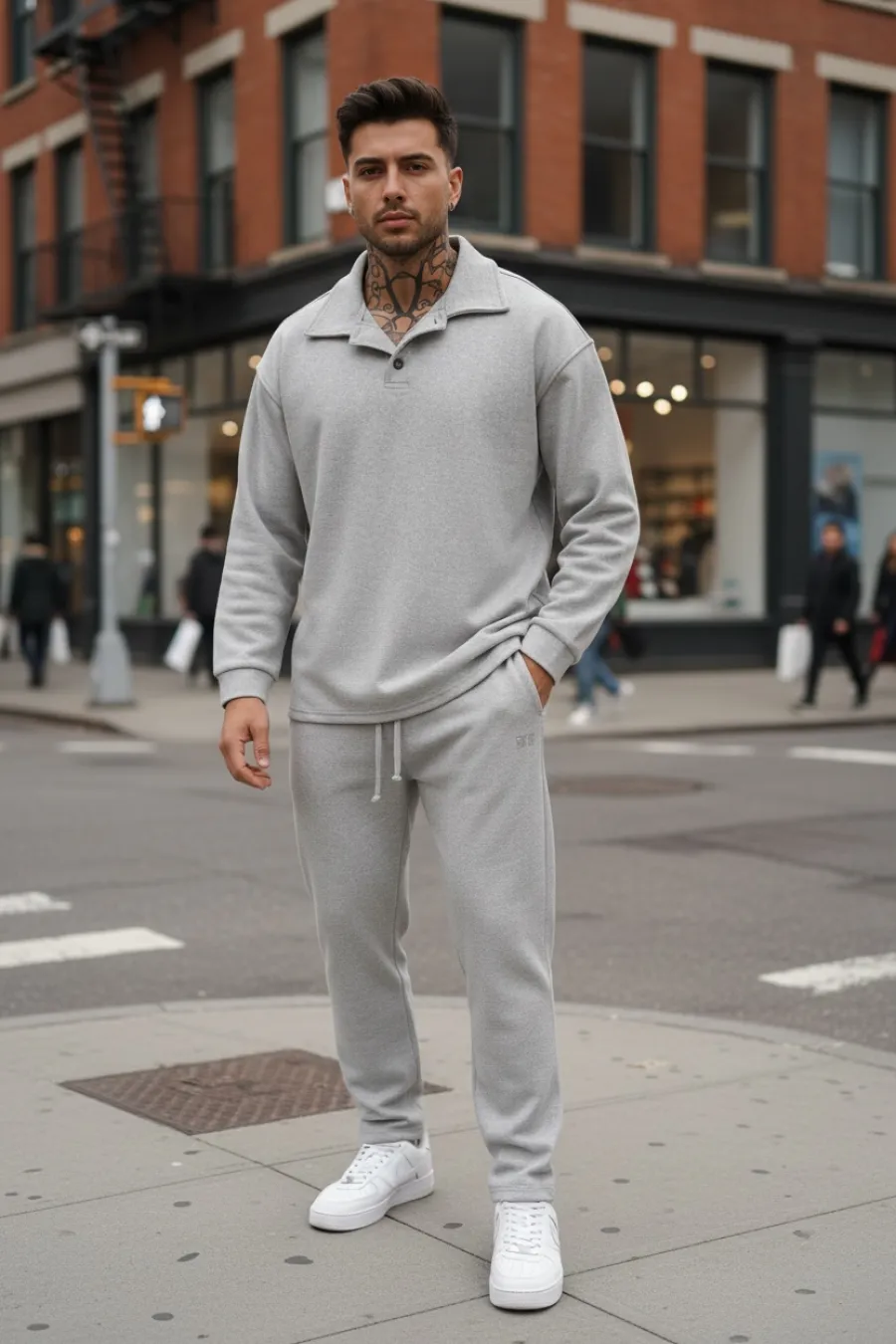 Trening barbati slim fit gri Pantaloni + Hanorac 2618 28-1.1
