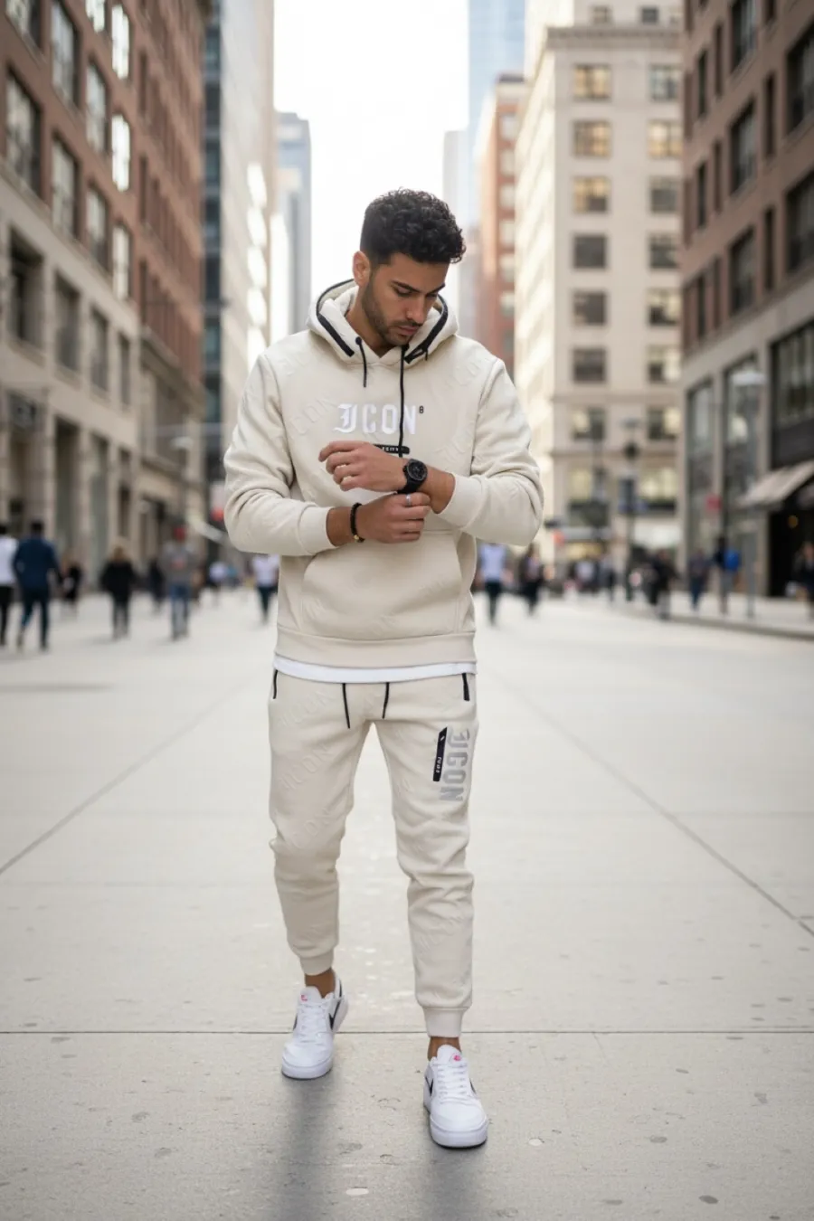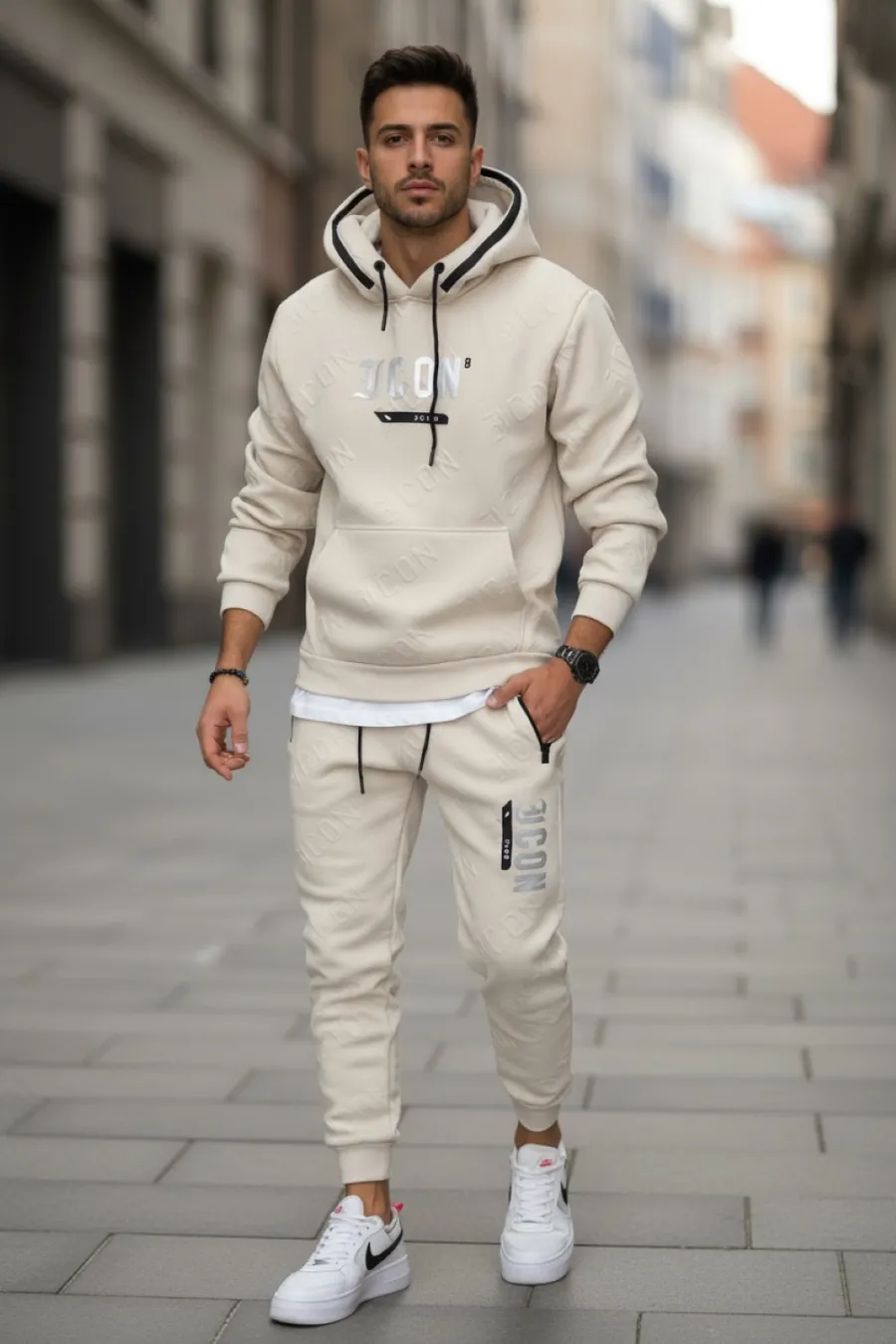 Trening barbati slim fit bej, Pantaloni + Hanorac 5025 108-3