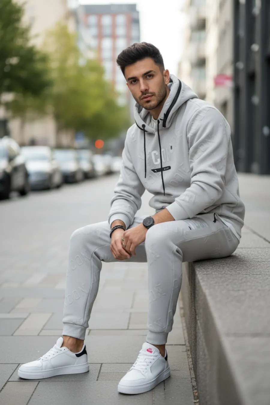 Trening barbati slim fit gri, Pantaloni + Hanorac 5025 102-2