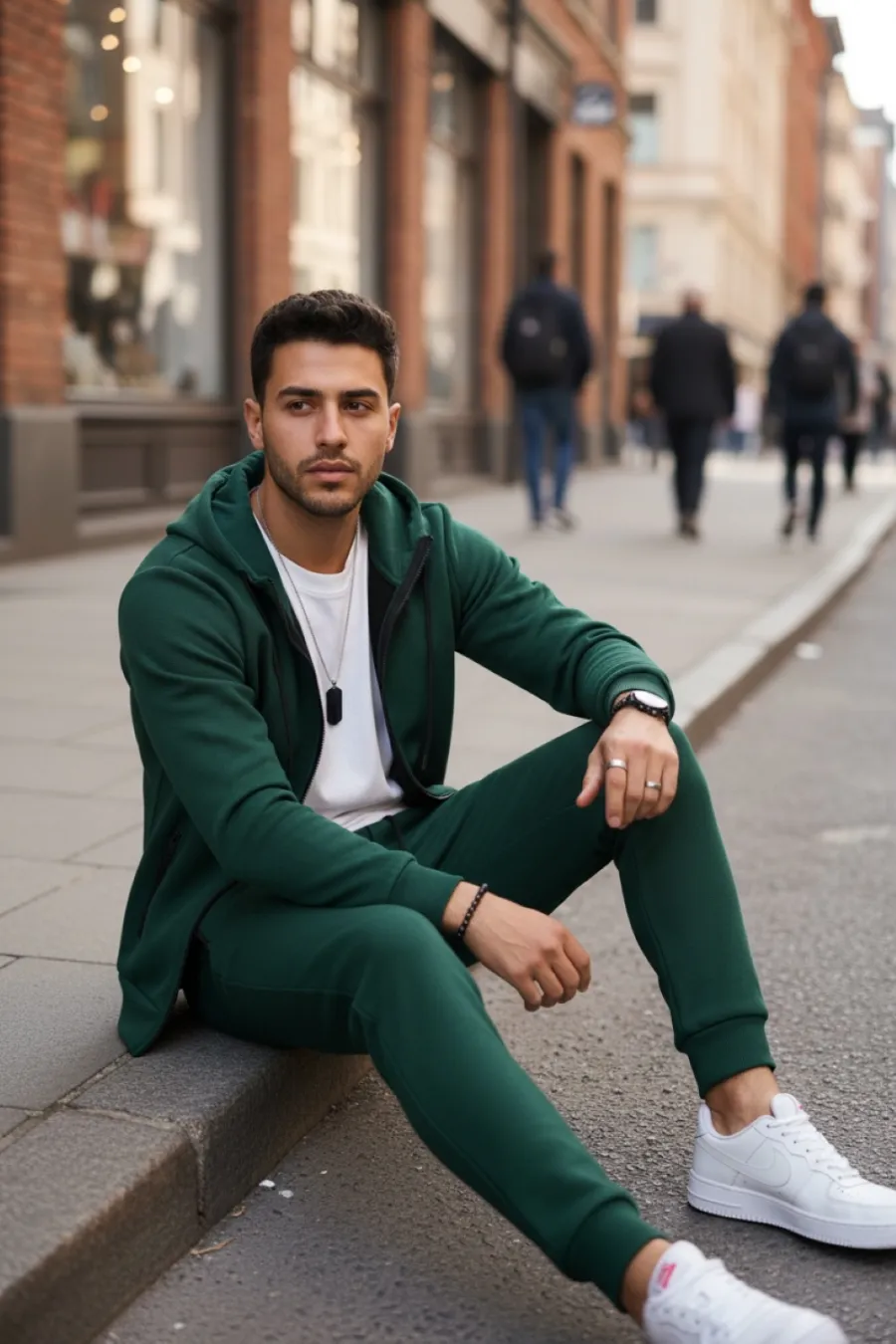 Trening barbati slim fit verde, Pantaloni + Hanorac 5031 I11-1