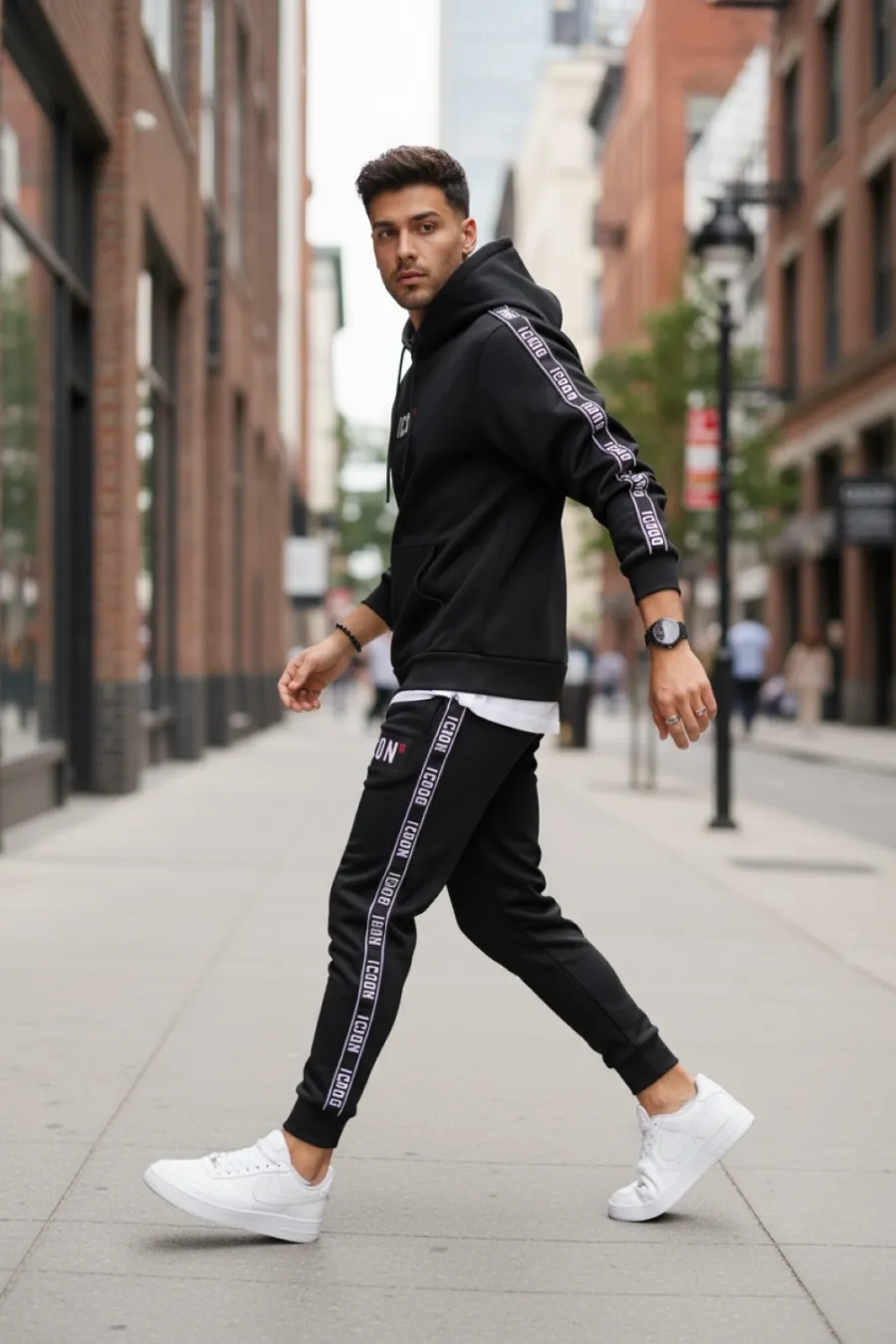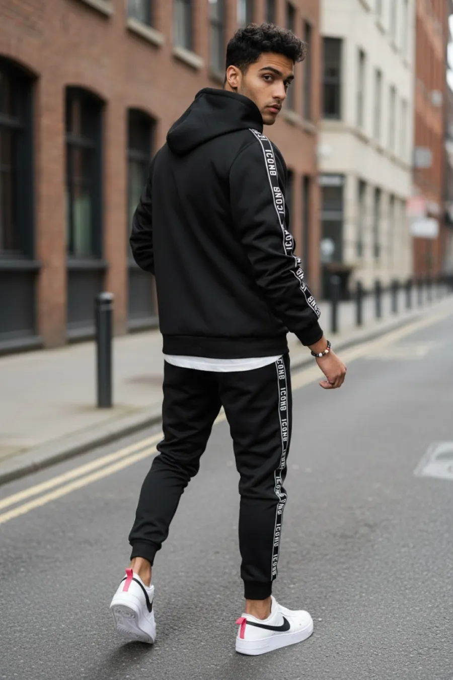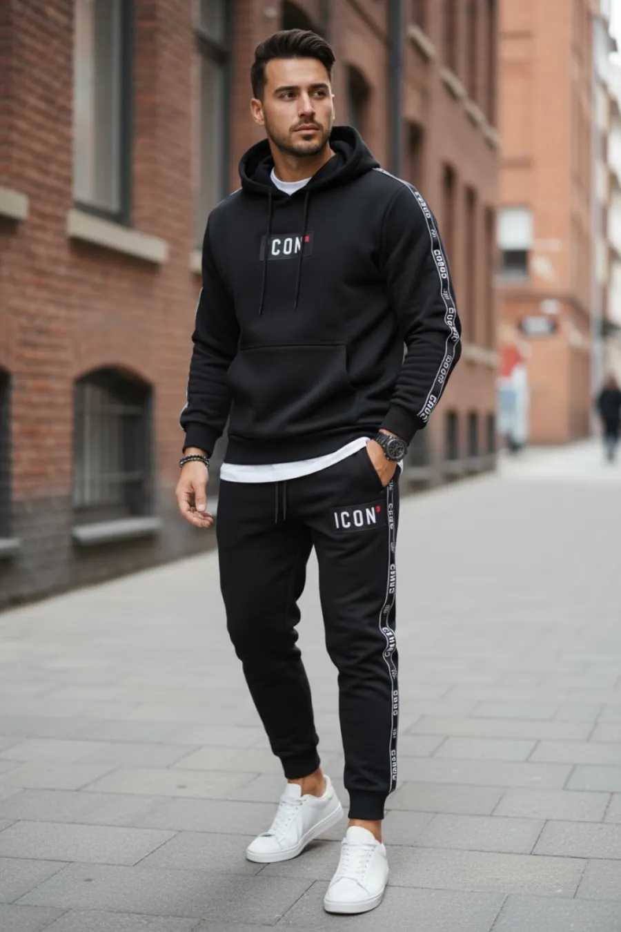 Trening barbati slim fit negru, Pantaloni + Hanorac 5041 i15-3.1