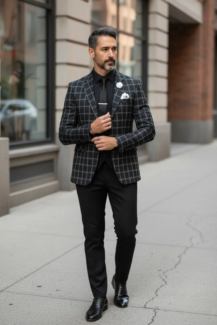 Sacou barbati slim fit negru in carouri 929 12-5.1