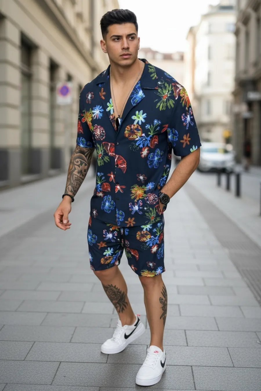 Compleu de vara cu imprimeu camasa + pantaloni 980