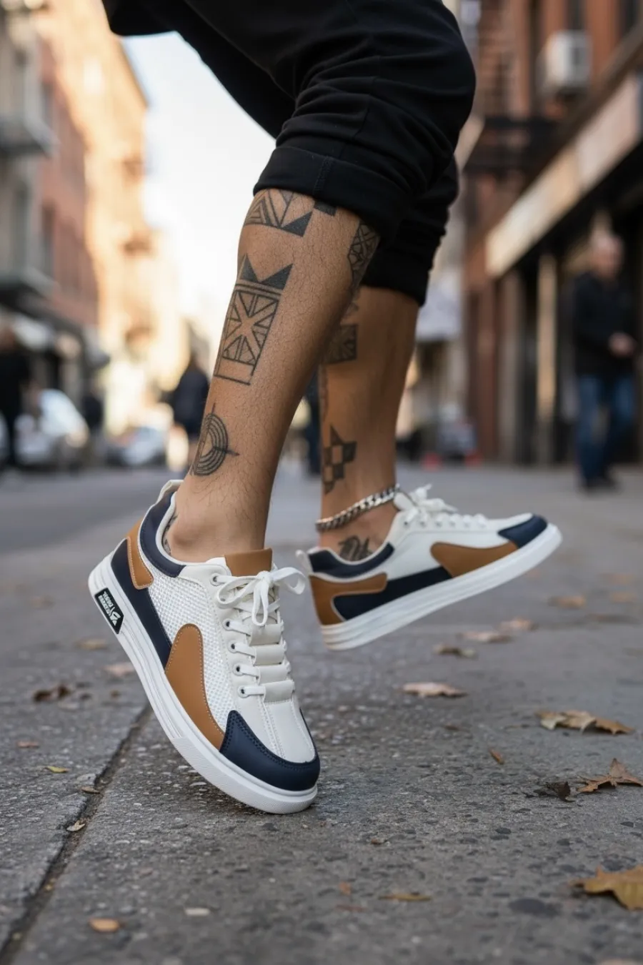 Adidasi barbati casual albi cu maro A108