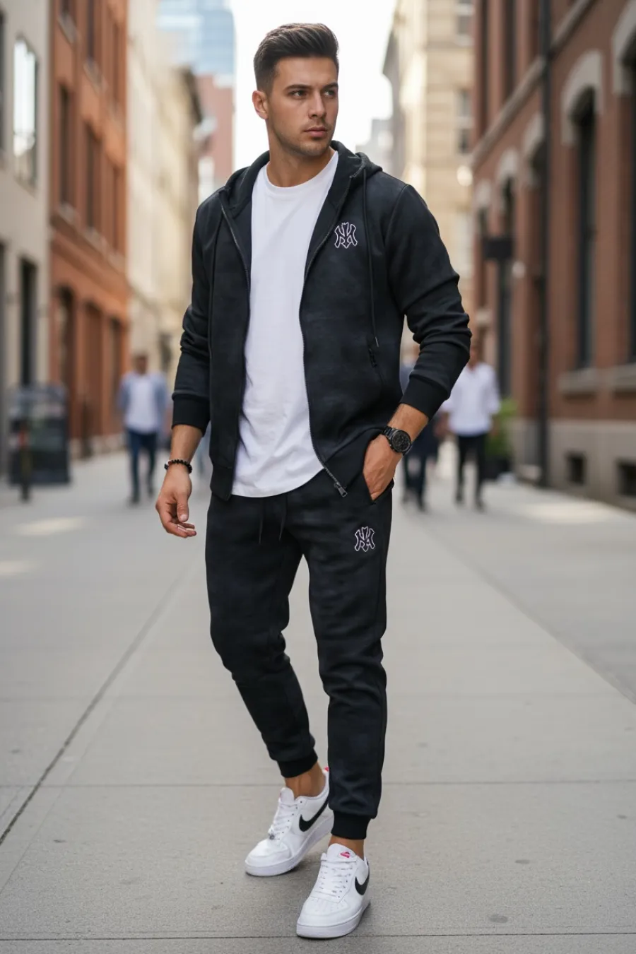 Trening barbati slim fit negru Pantaloni + Hanorac AB031 45-2.3