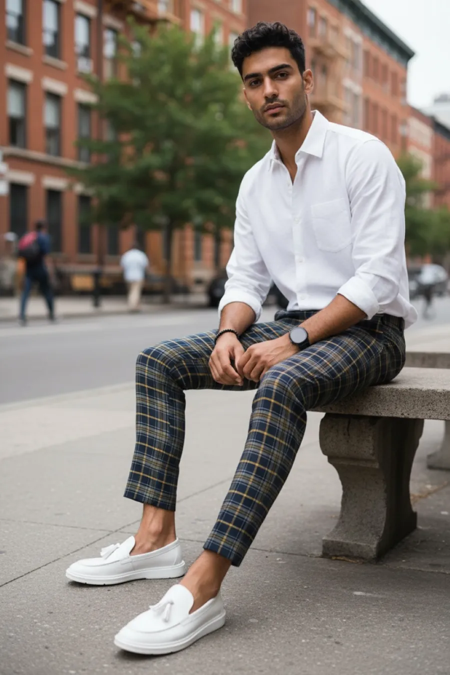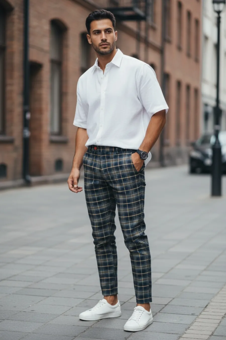 Pantaloni barbati eleganti in carouri B8508 Z35-2