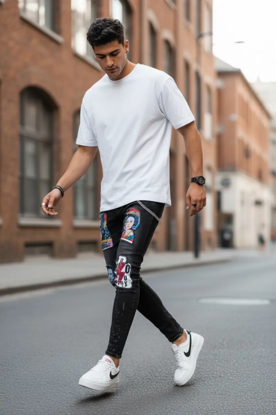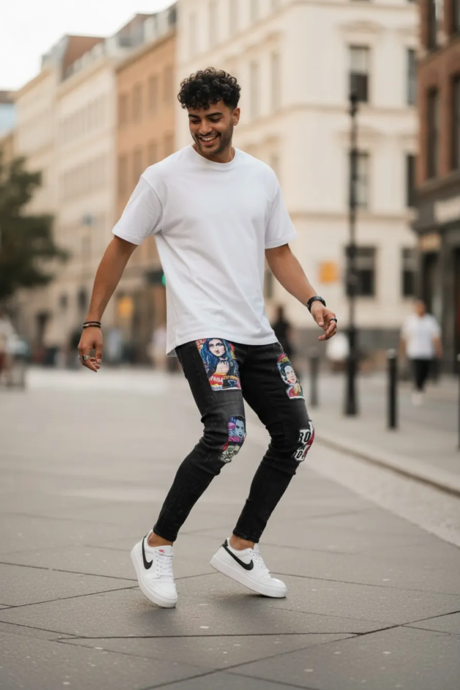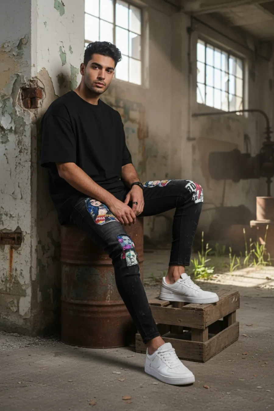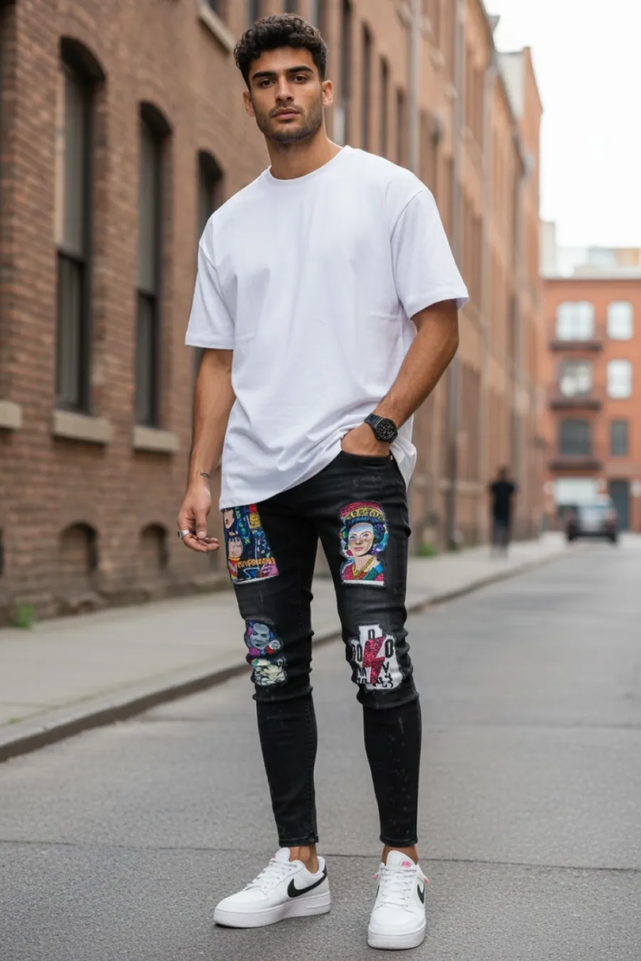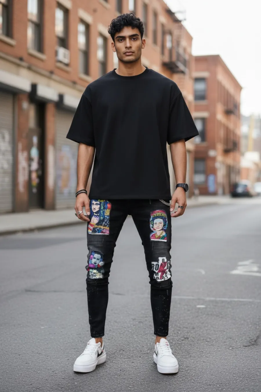 Blugi barbati conici negri cu stikere 1452 G4-3*