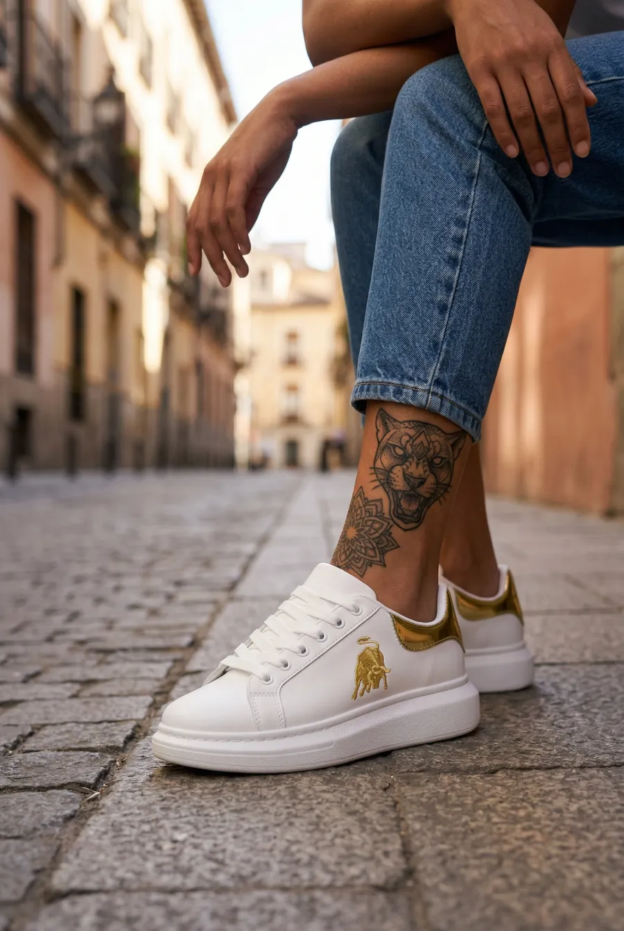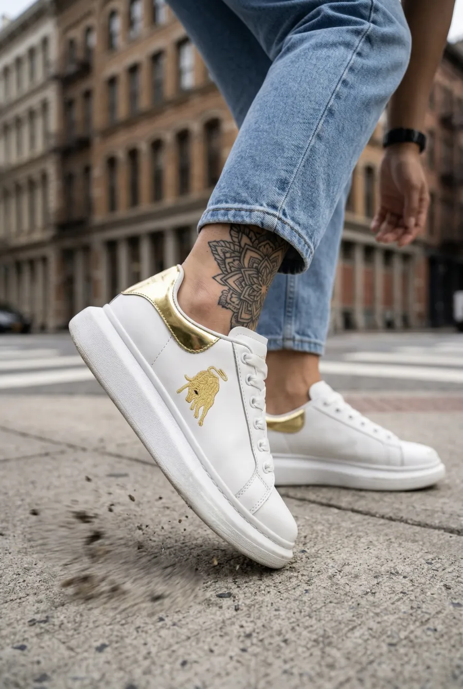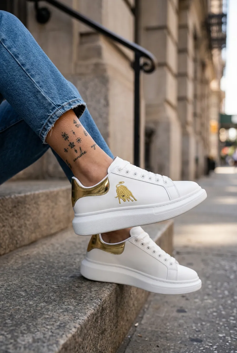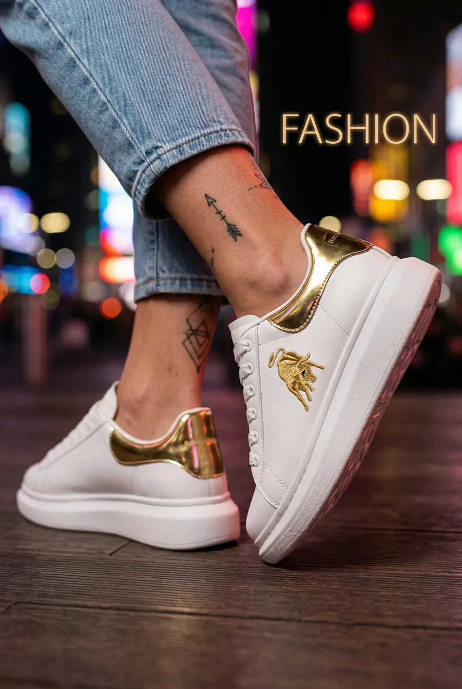 Adidasi dama casual albi cu imprimeu auriu FCL805 T6-2