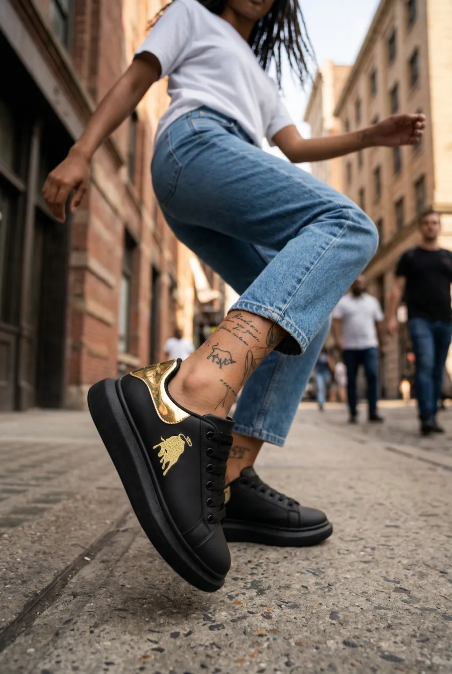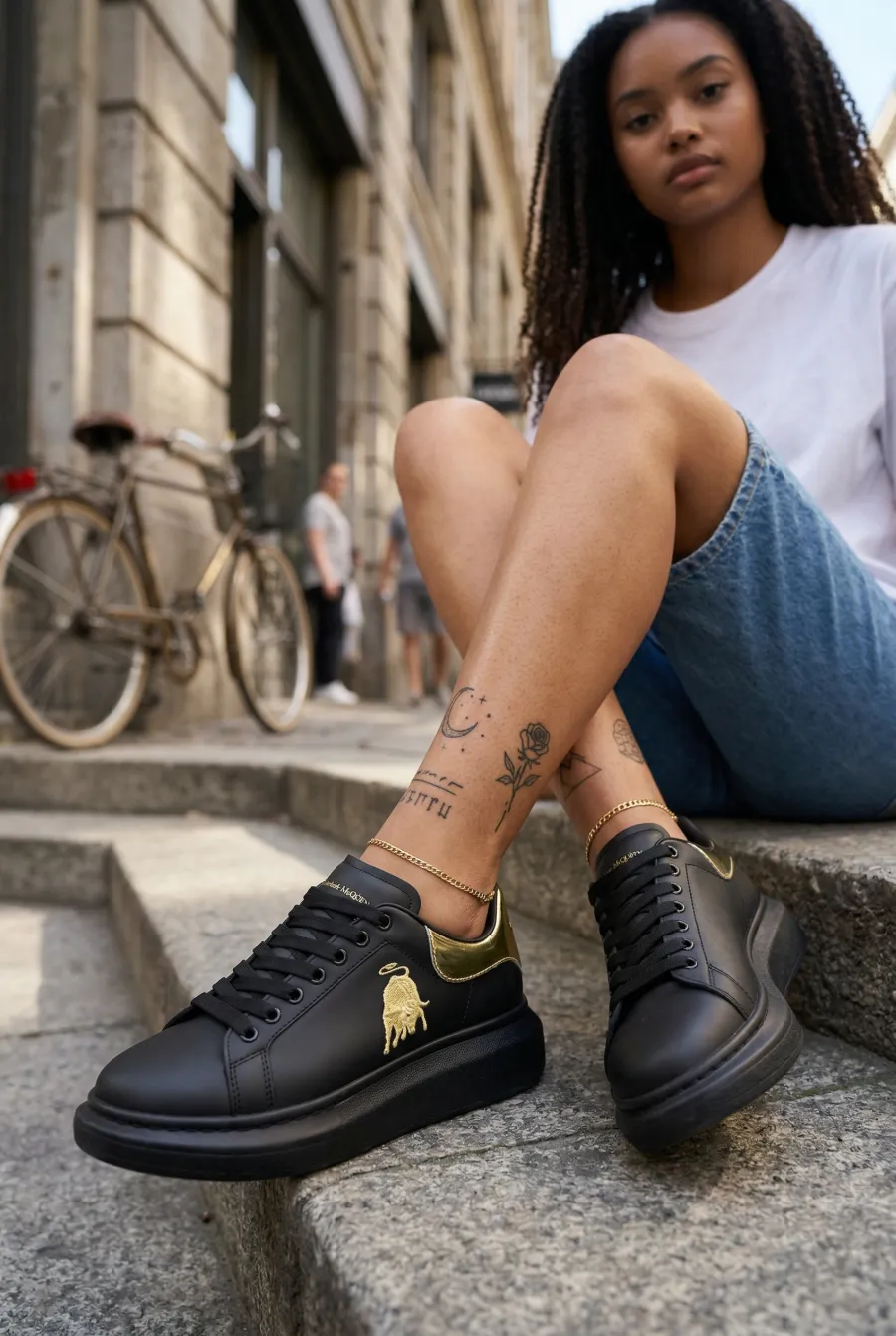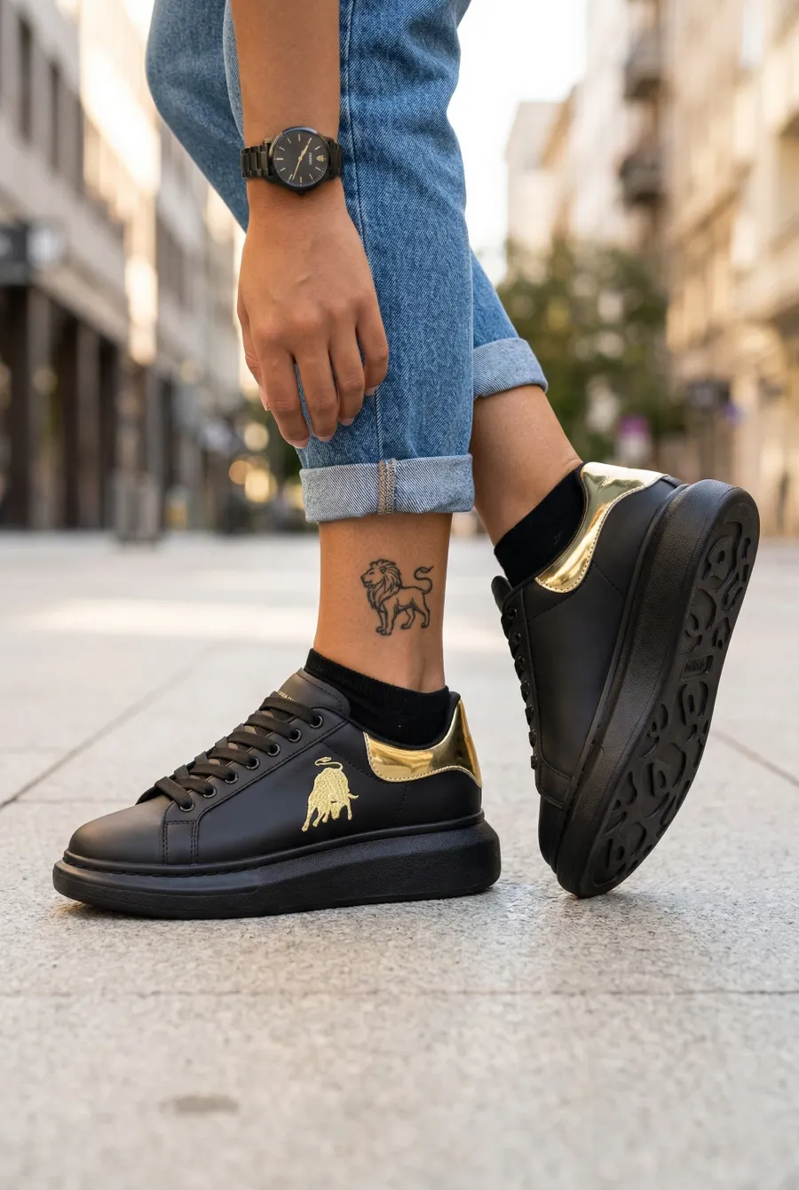 Adidasi dama casual negri cu imprimeu auriu FCL805 T6-2