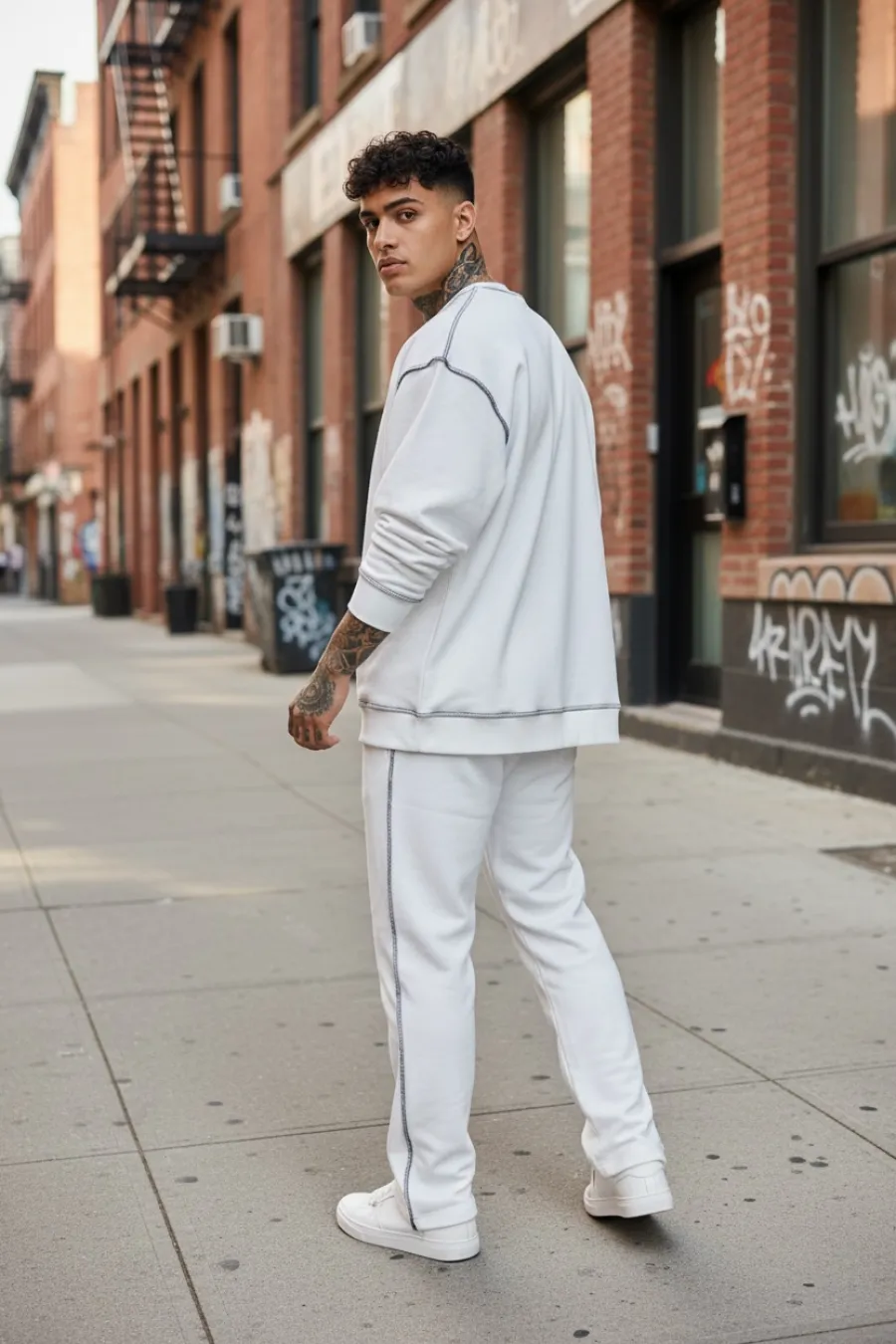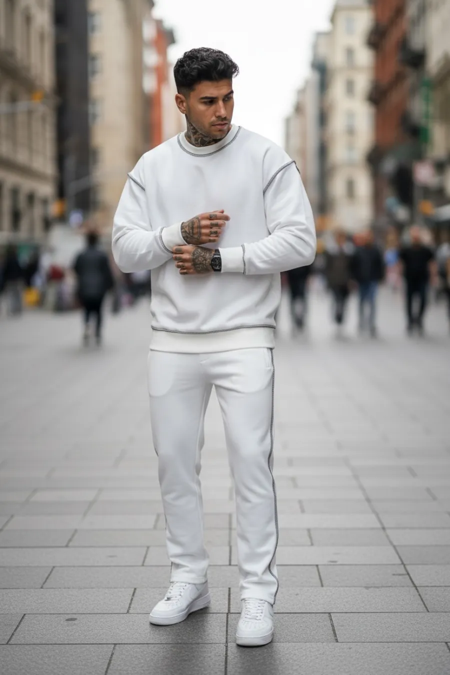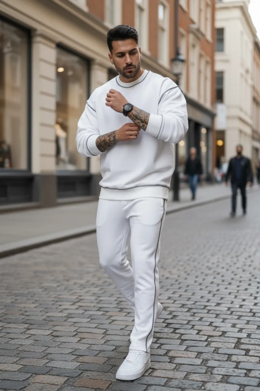 Trening barbati slim fit alb Pantaloni + Hanorac K008 28
