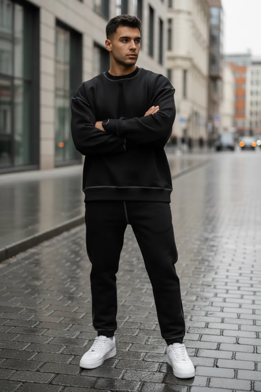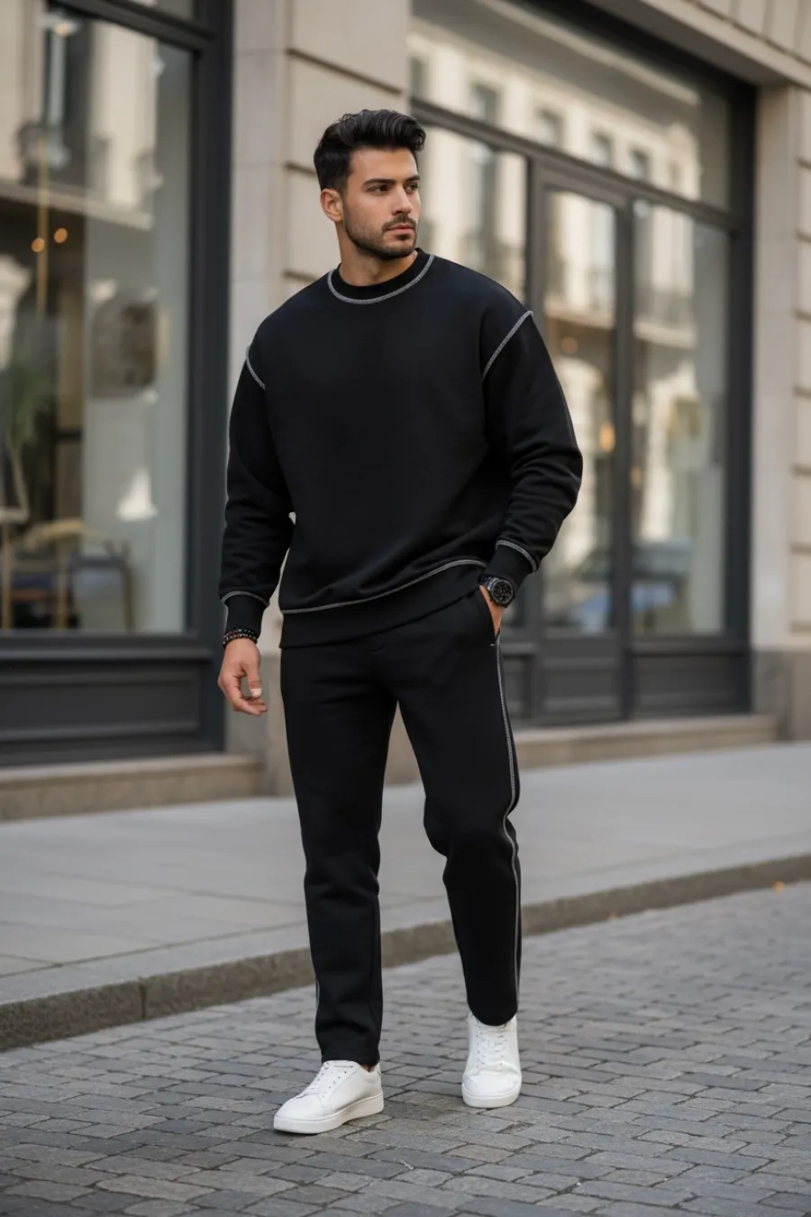 Trening barbati slim fit negru Pantaloni + Hanorac K008 30-5