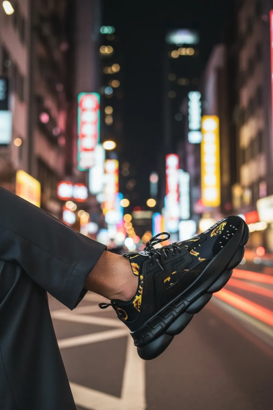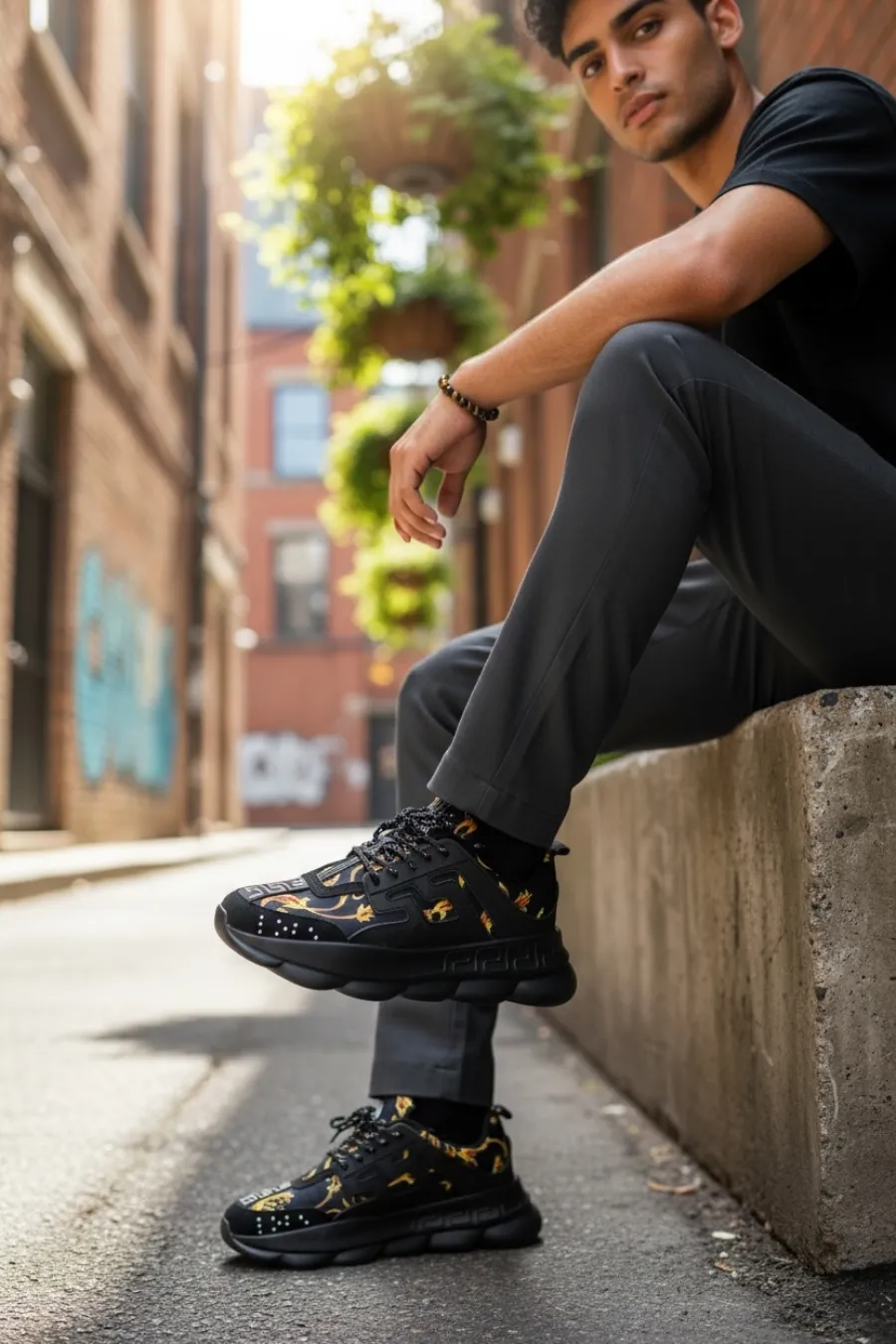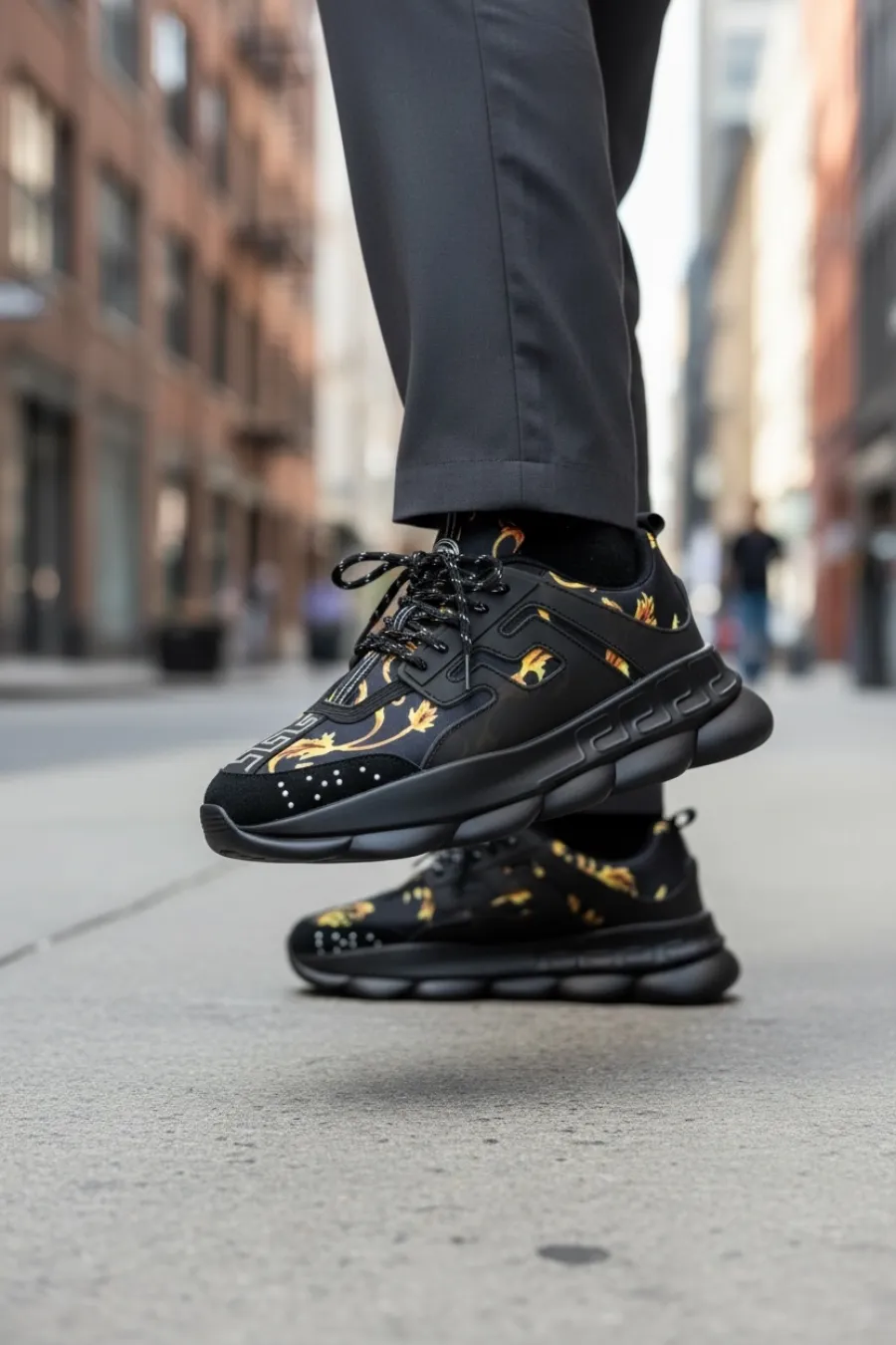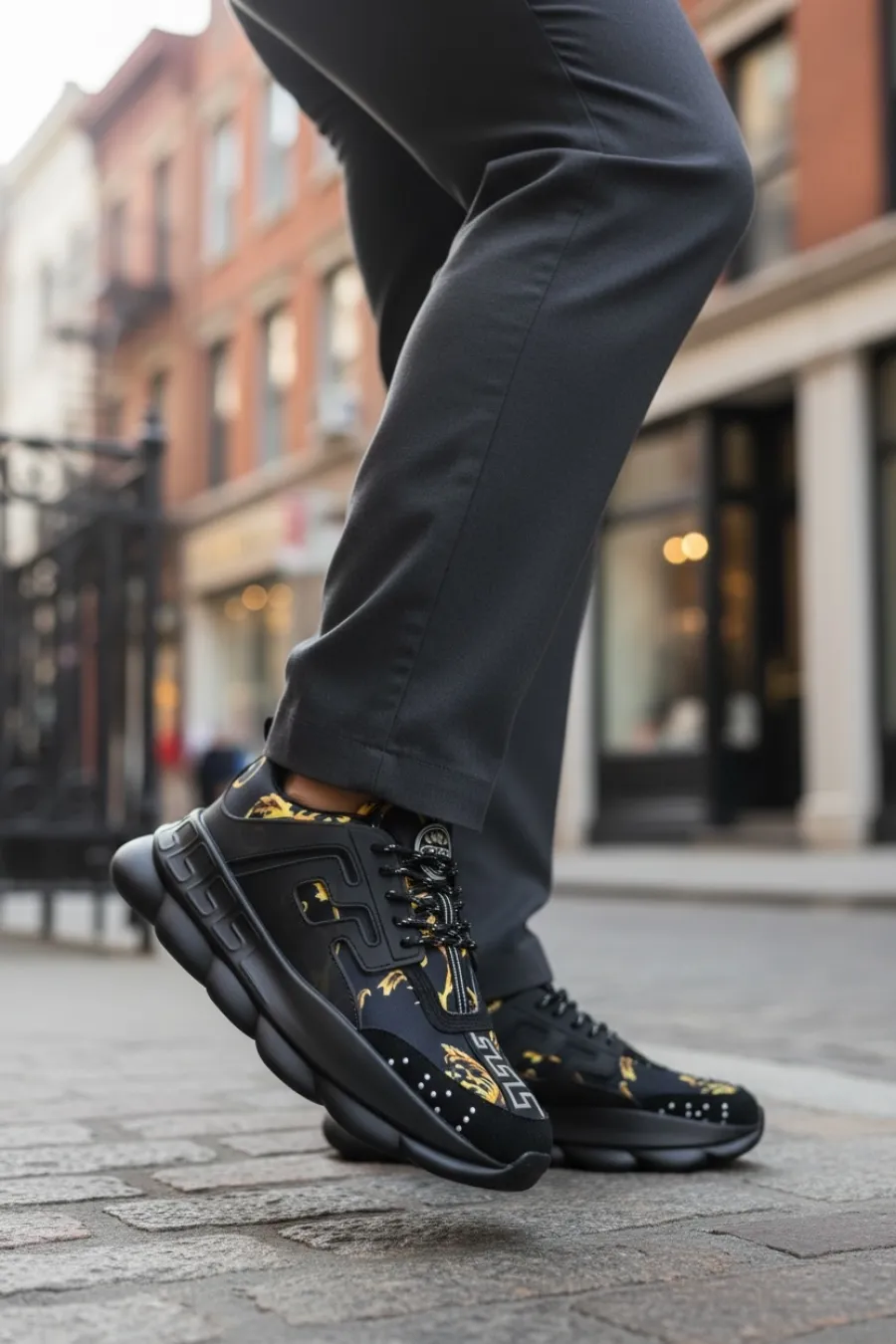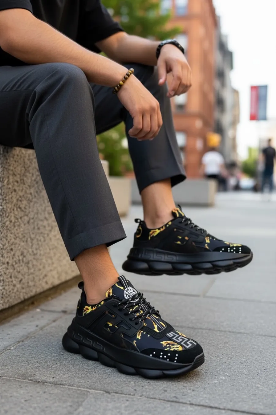 Adidasi barbati casual, negri cu auriu L21 N4-4