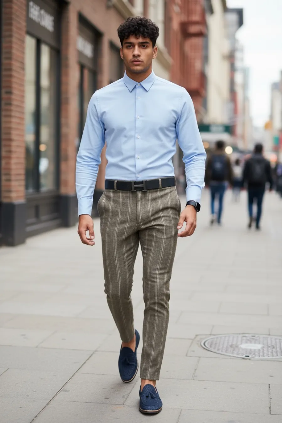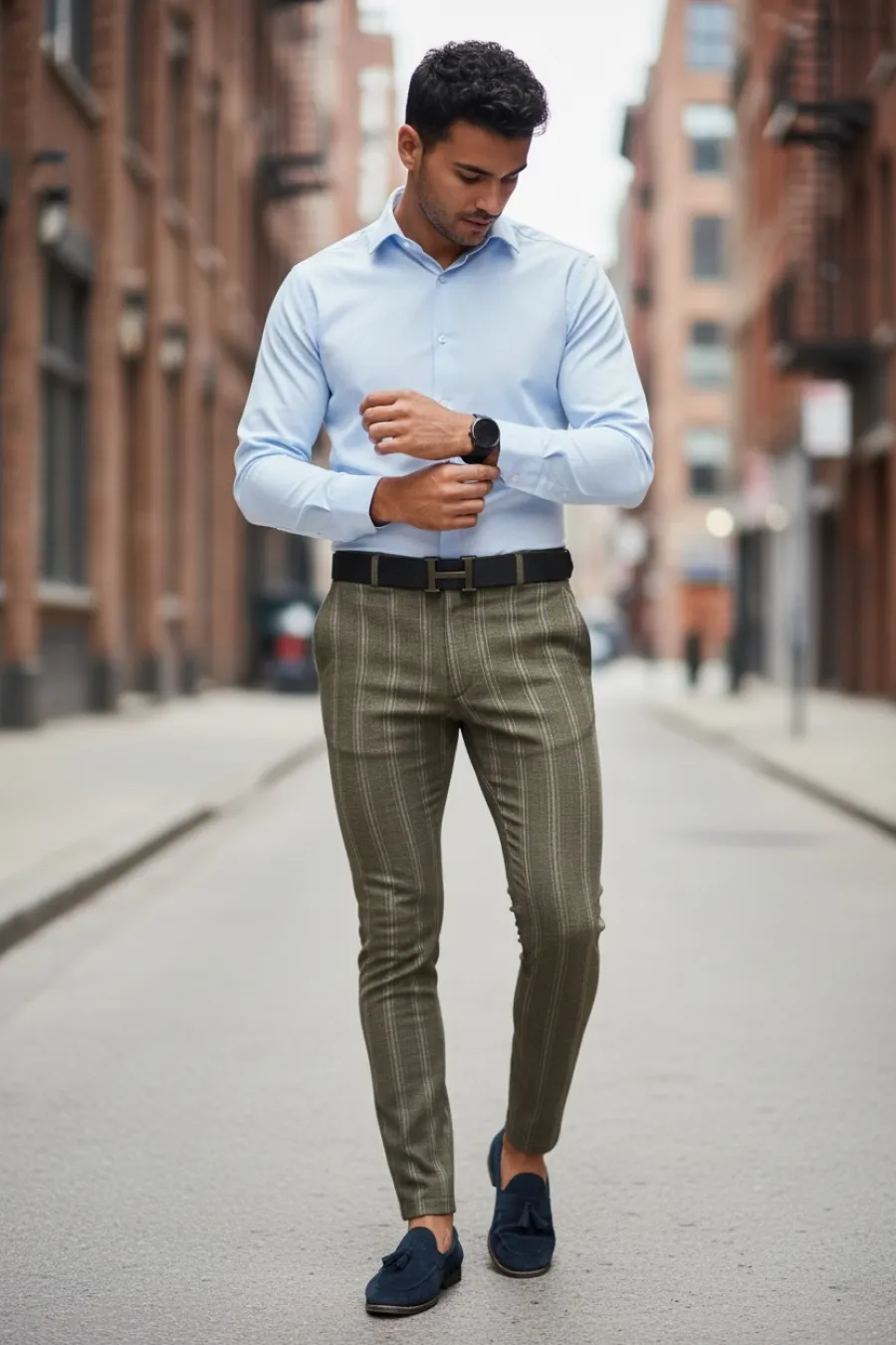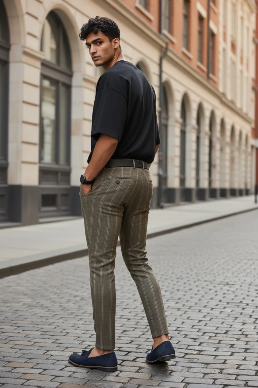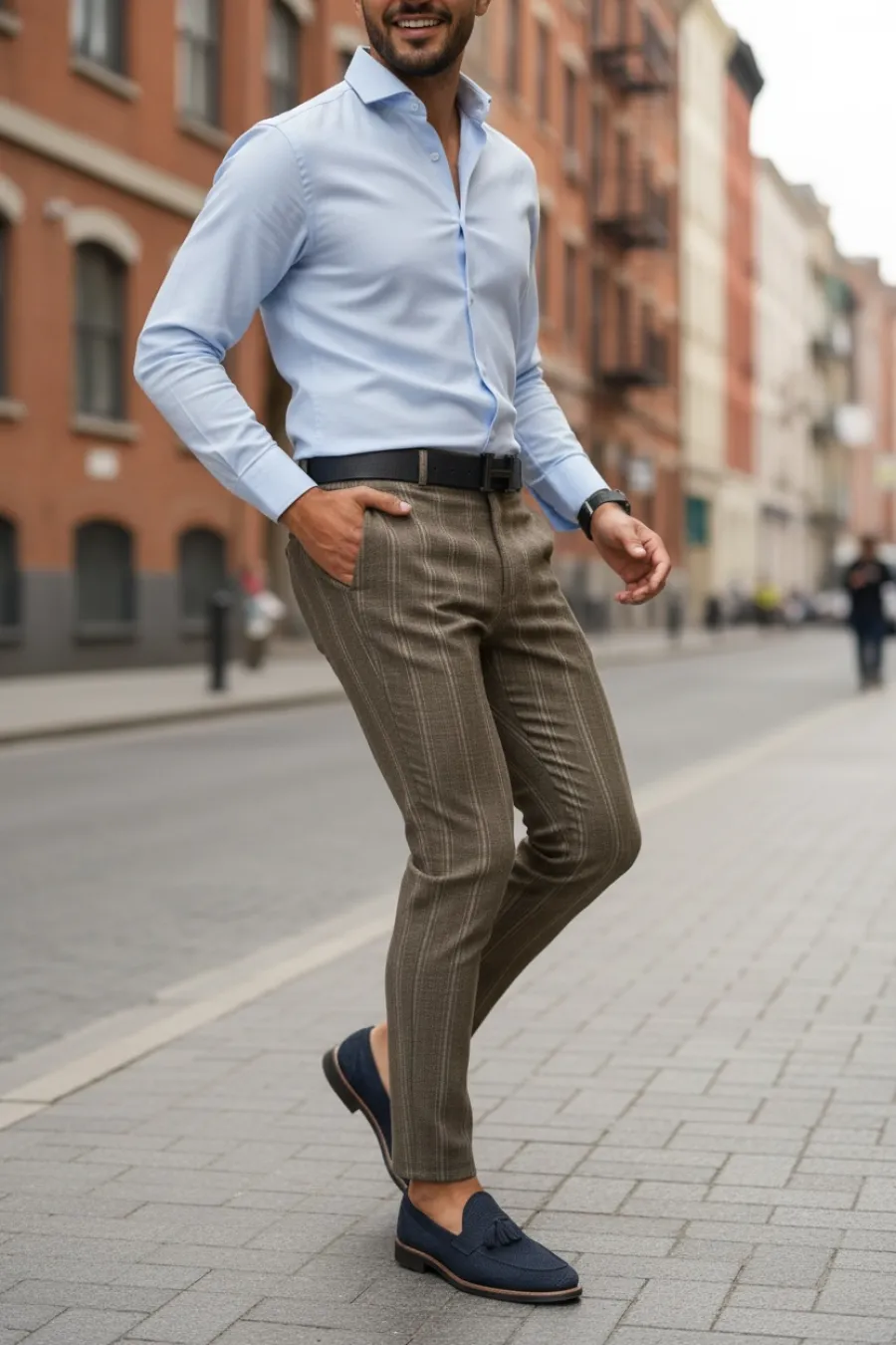 Pantaloni barbati eleganti kaki in dungi B1630 B2-5.1