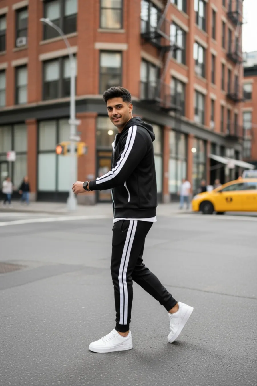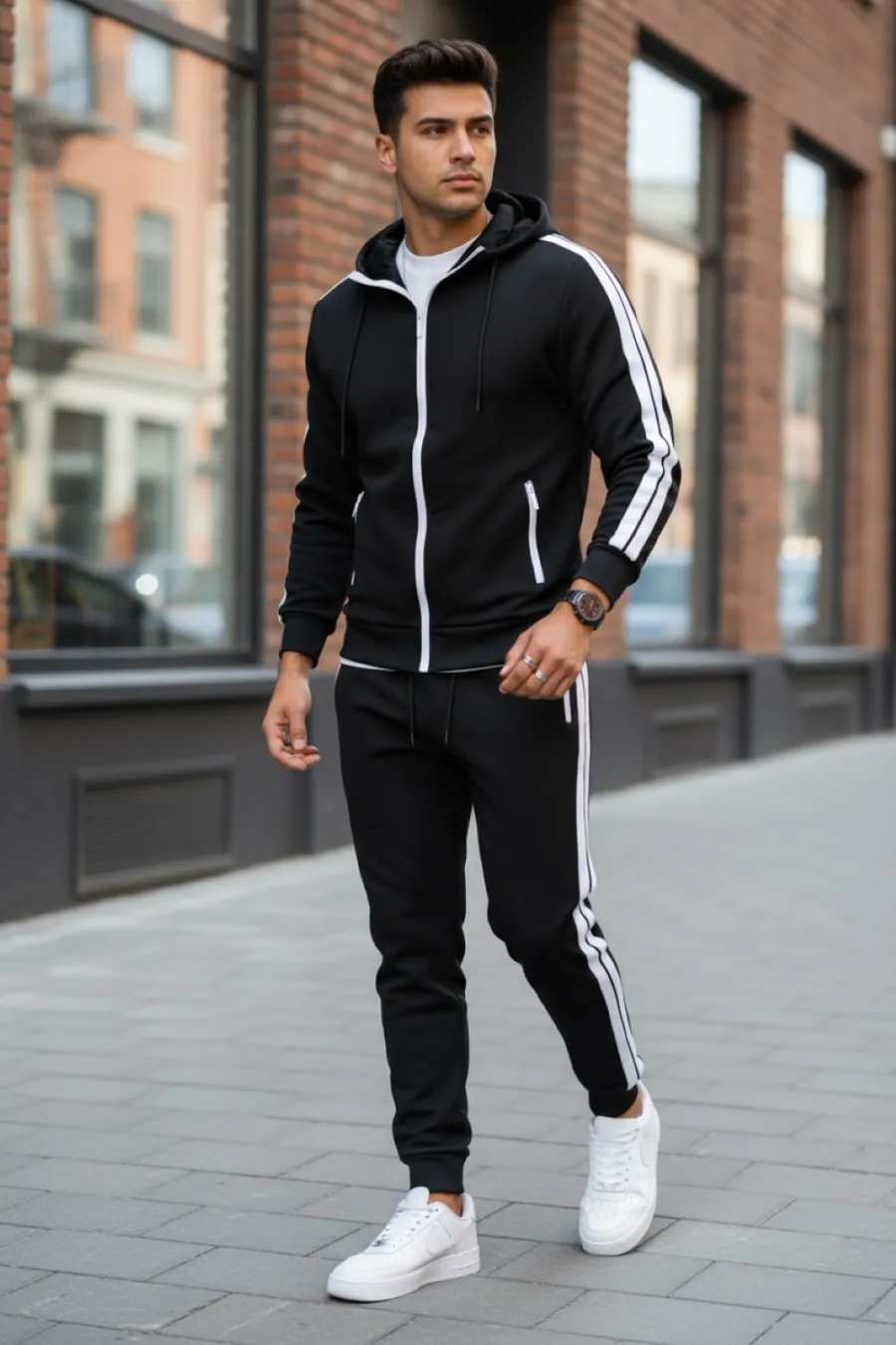 Trening barbati slim fit negru, Pantaloni + Hanorac RM111 i8 3-4