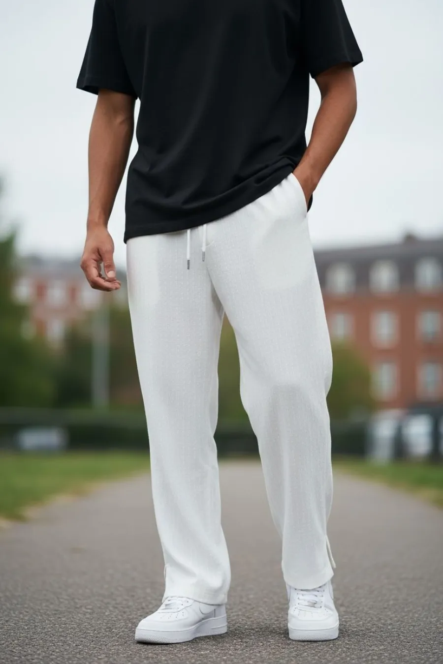 Pantaloni de trening cargo, albi, conici Y125 O3-4.3