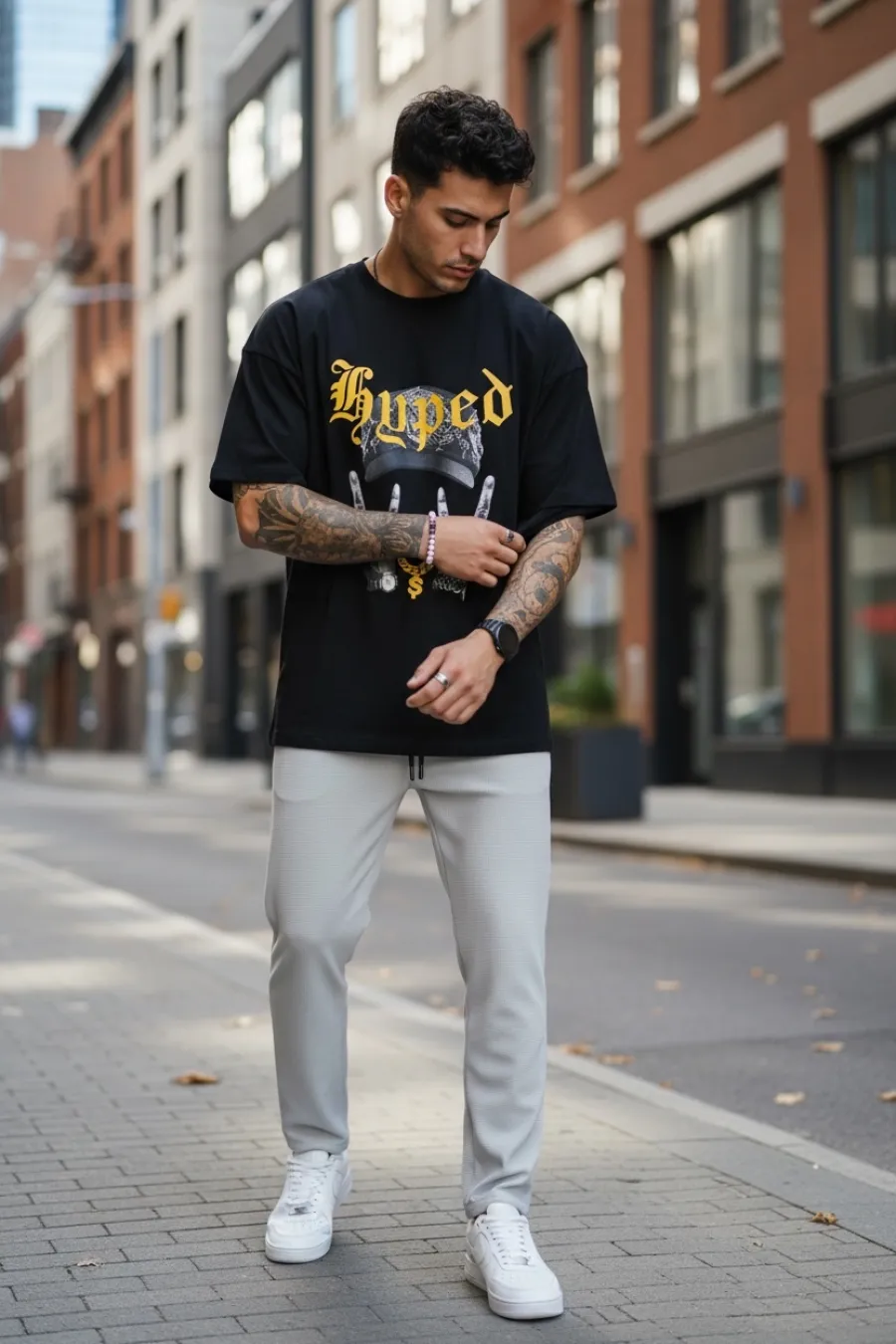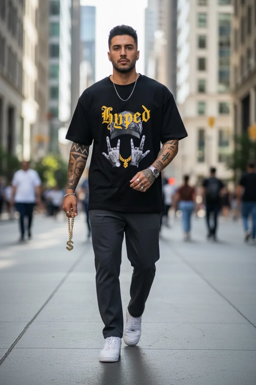 Tricou barbati negru, cu imprimeu, oversize Y171 33-5.1