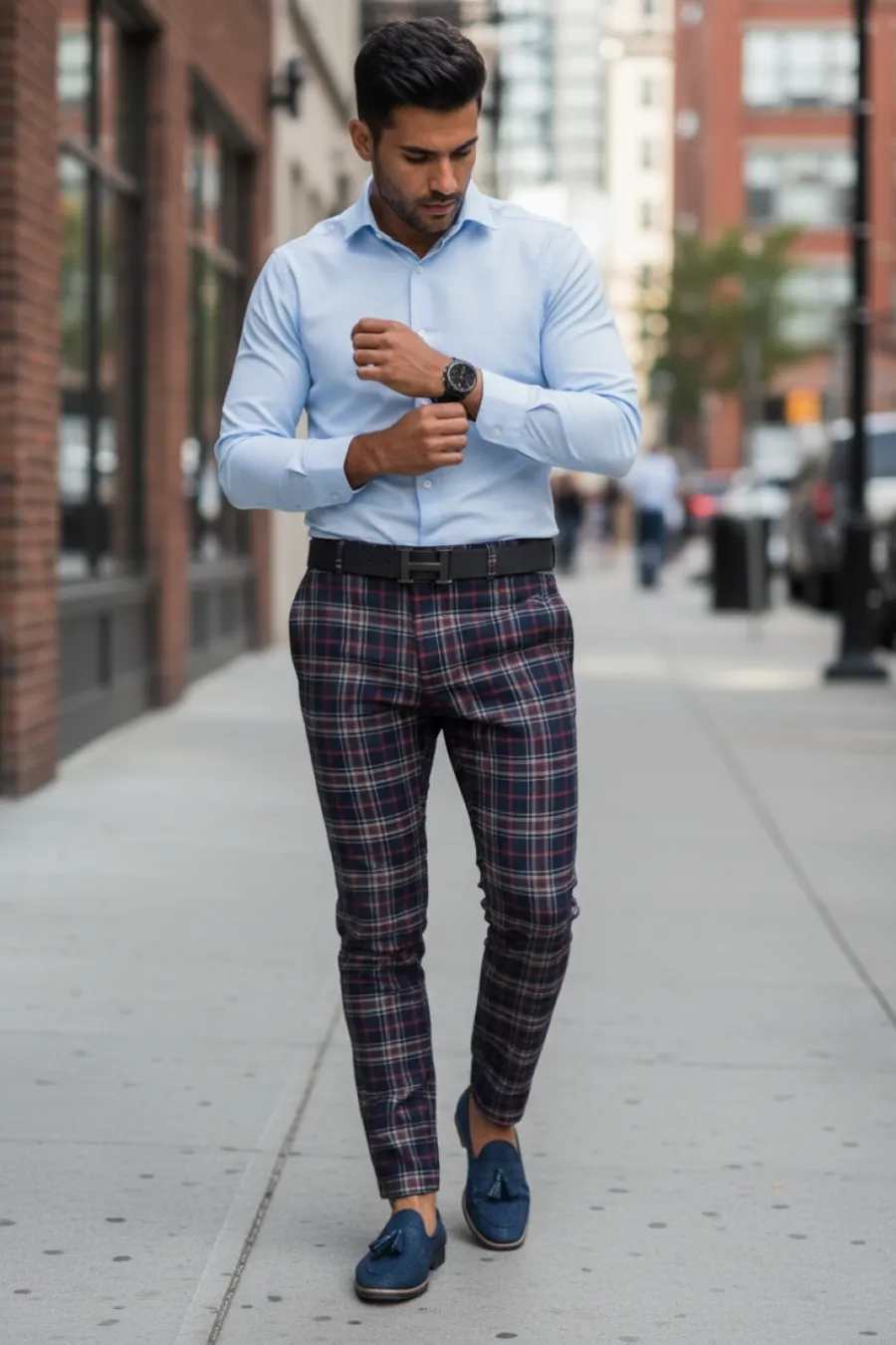 Pantaloni barbati casual regular fit in carouri B1822 7-4.1