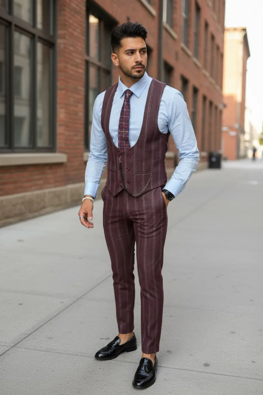 Compleu barbati Vesta + Pantaloni grena B5517 Y