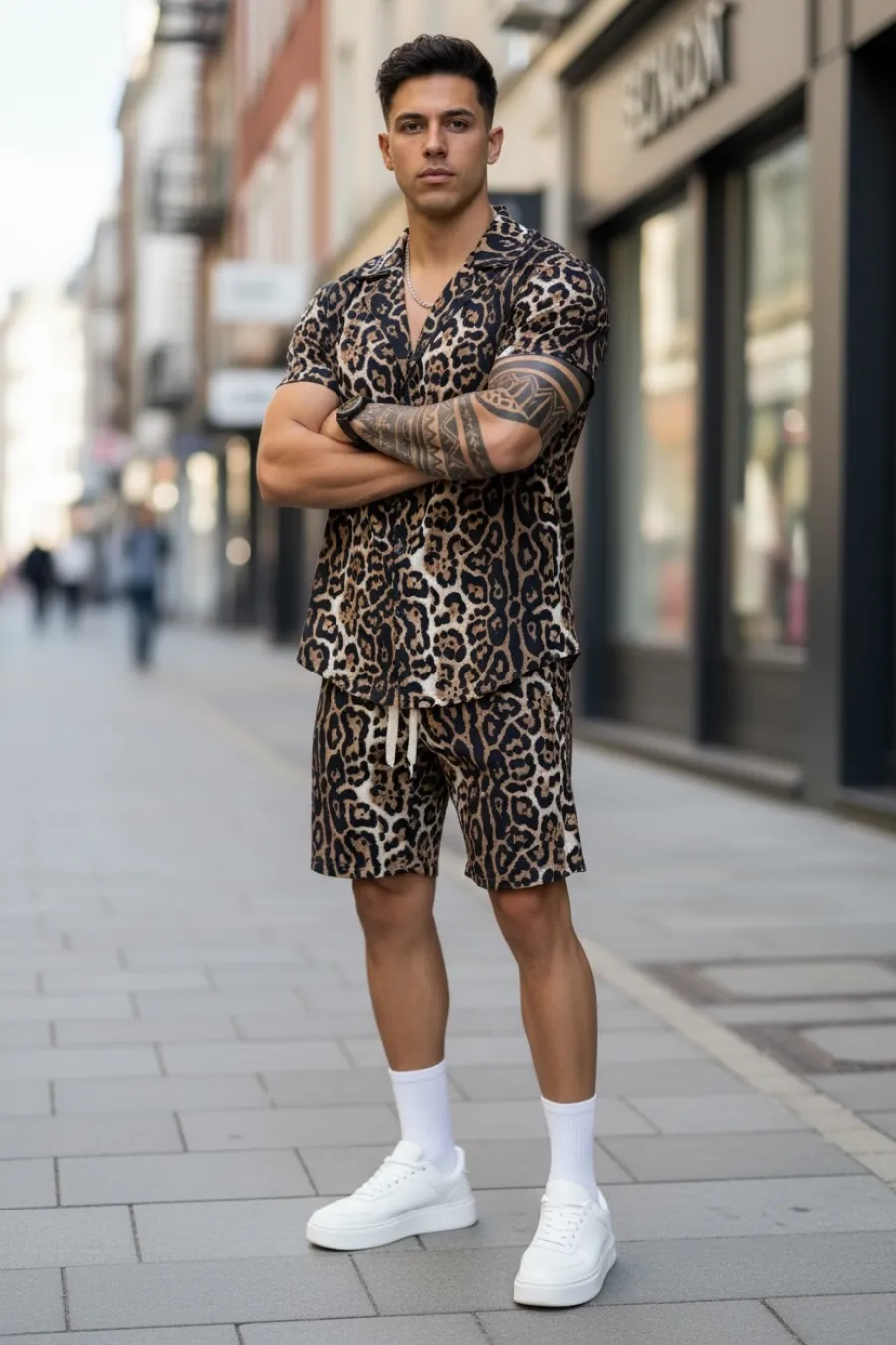 Compleu de vara camasa cu imprimeu + pantaloni animal print maro P7