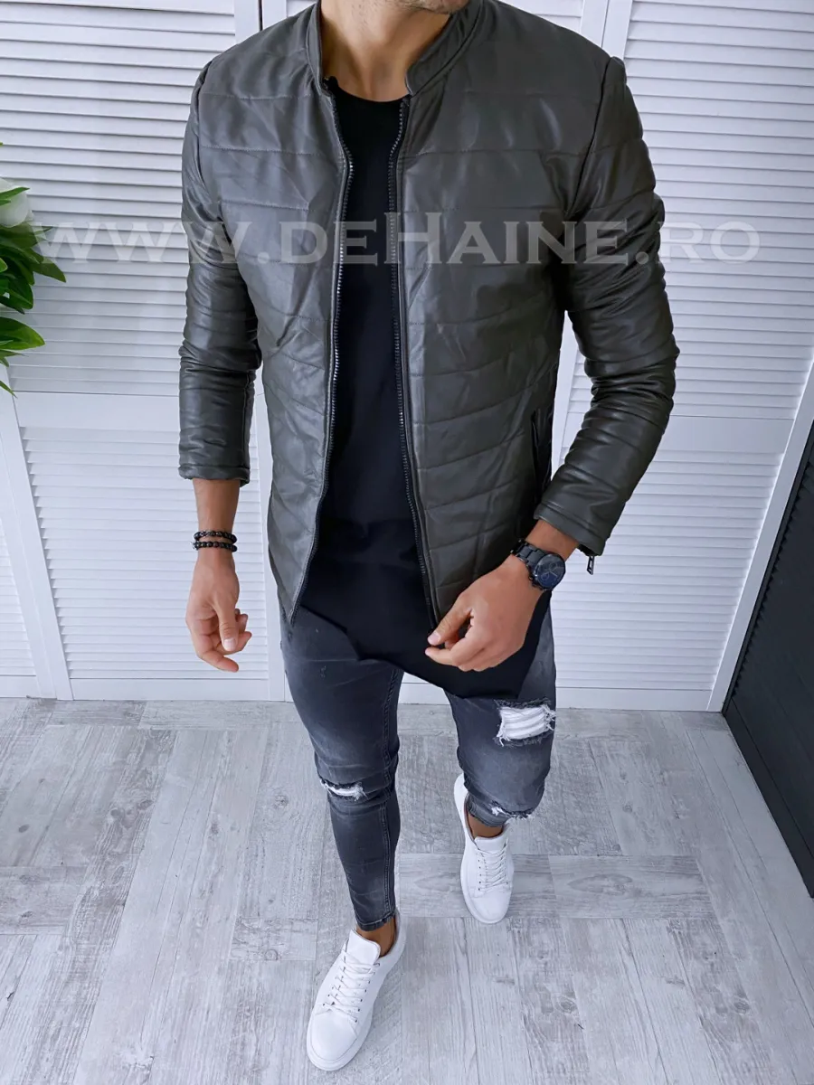 Geaca barbati piele ecologica kaki
