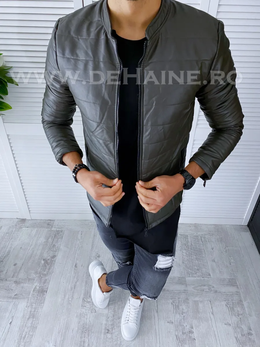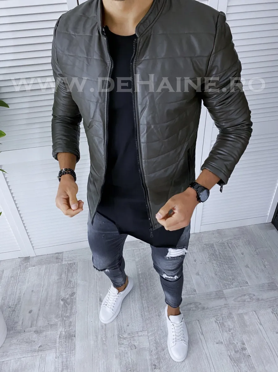 Geaca barbati kaki piele ecologica B2838 D0-5
