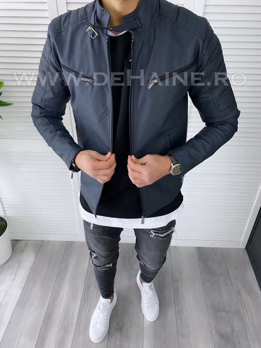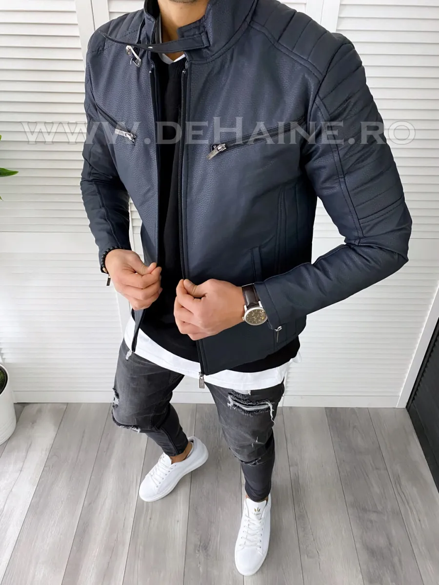 Geaca barbati bleumarin piele ecologica B7179 58-4