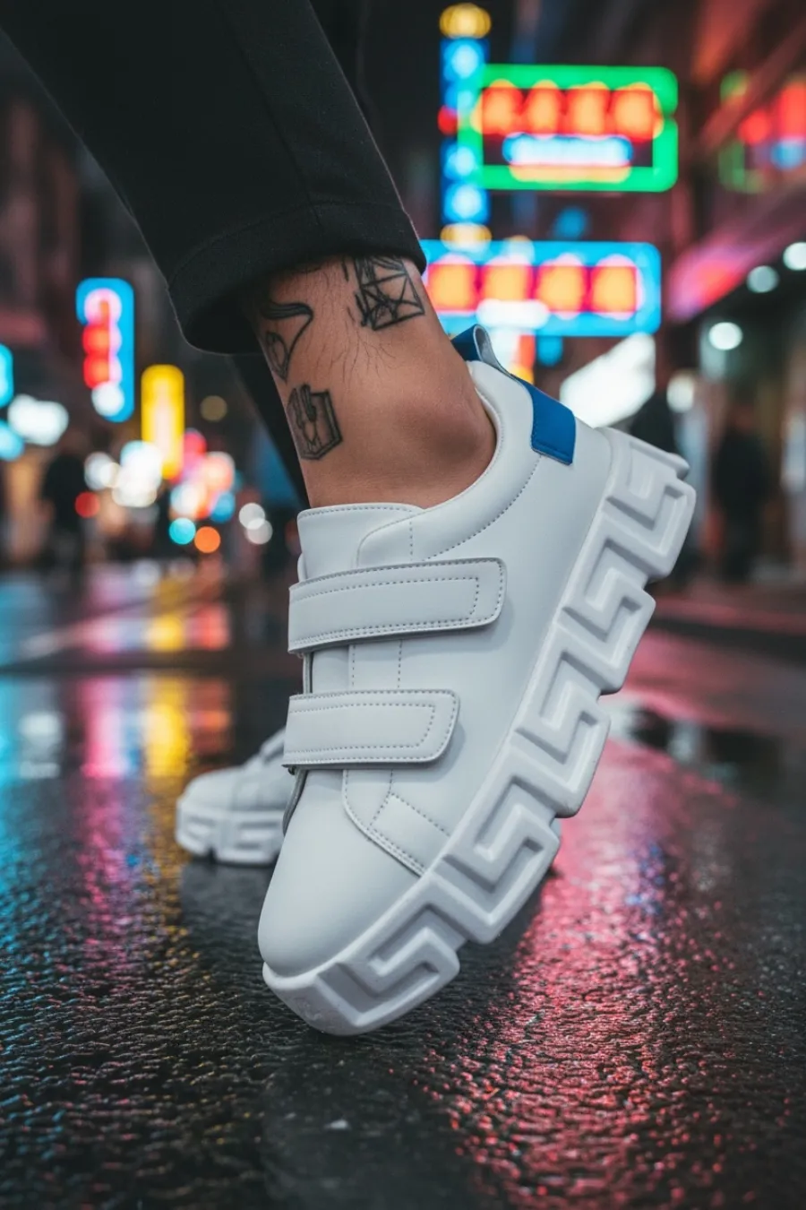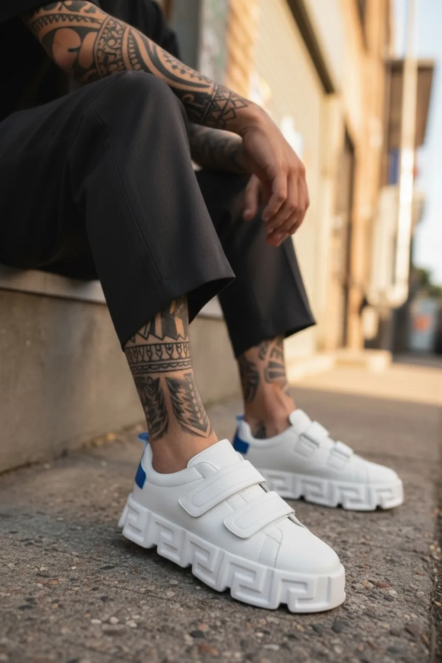 Adidasi barbati VSC Greca albi cu albastru, cu arici 092 N10-3