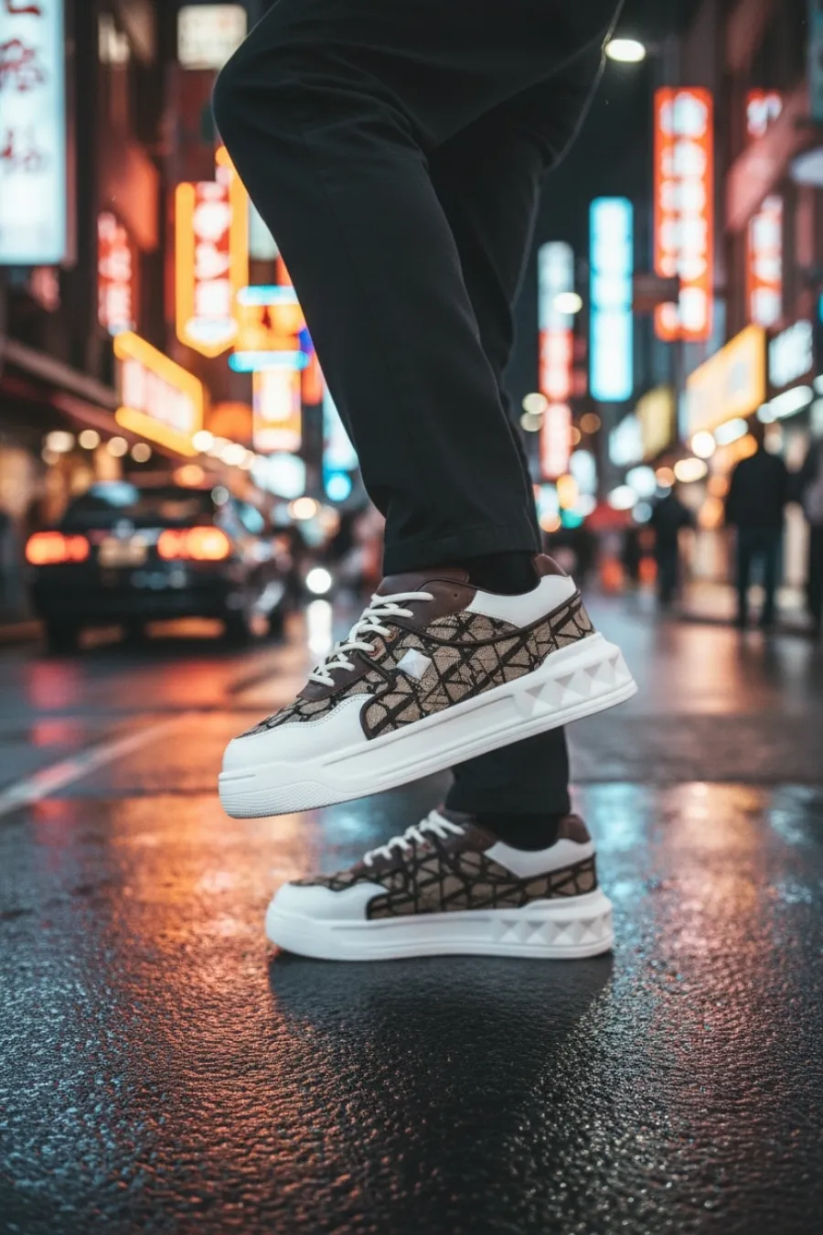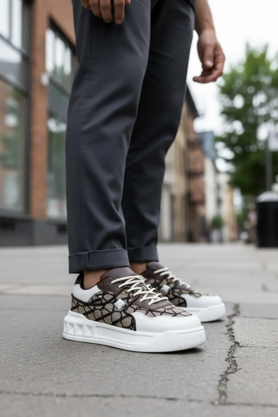 Adidasi barbati casual, albi cu auriu, VLT L75