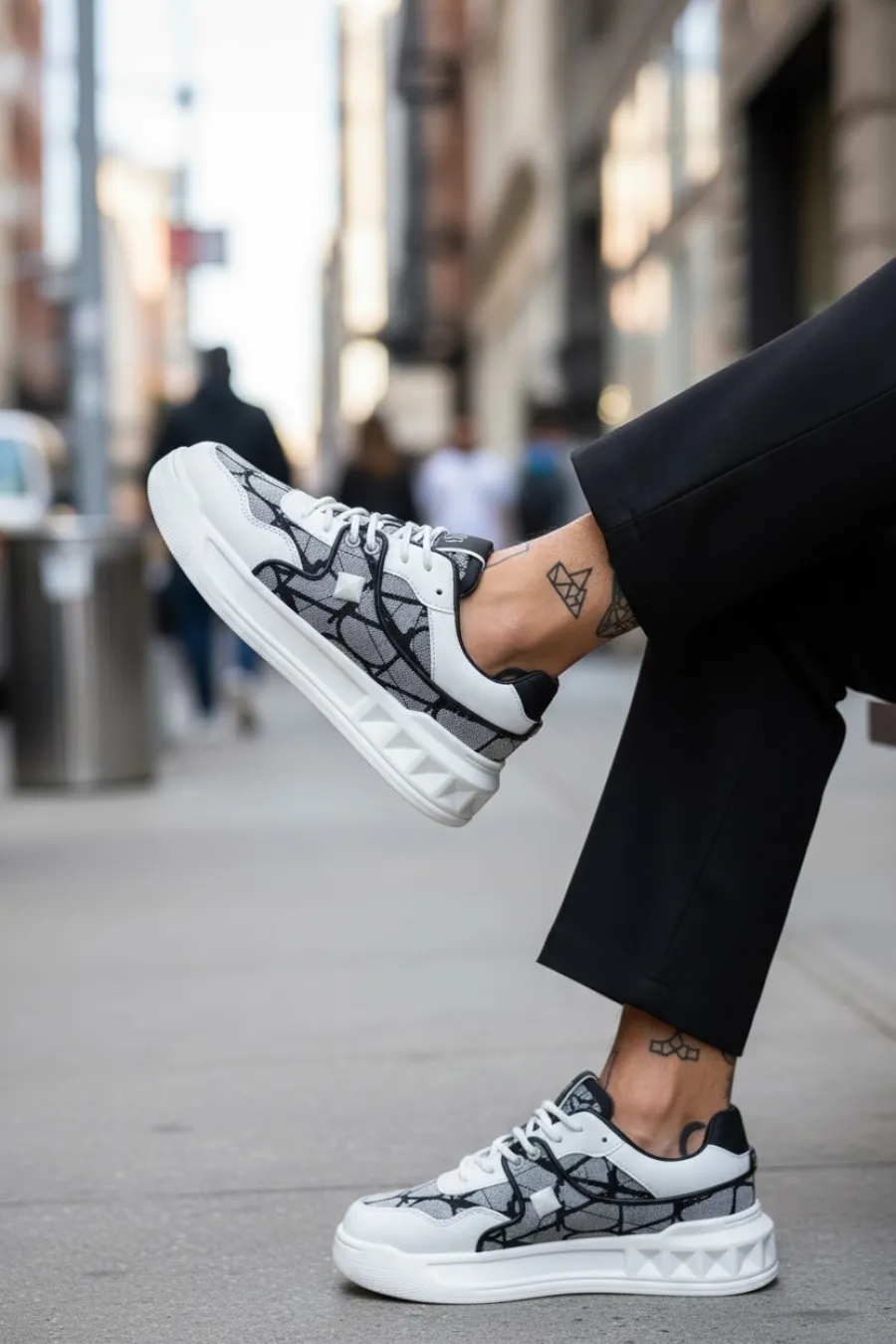 Adidasi barbati casual, albi cu gri, VLT L75