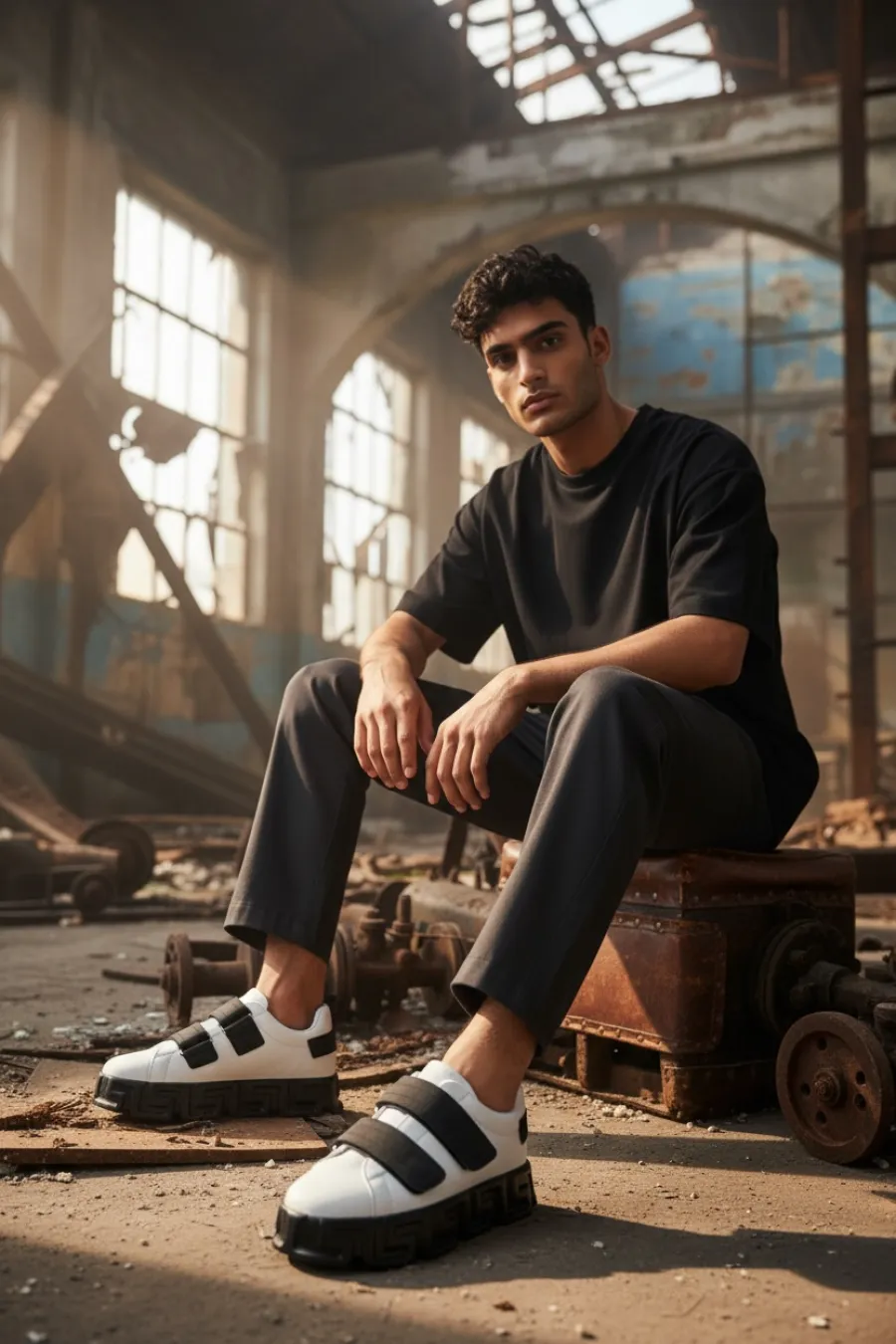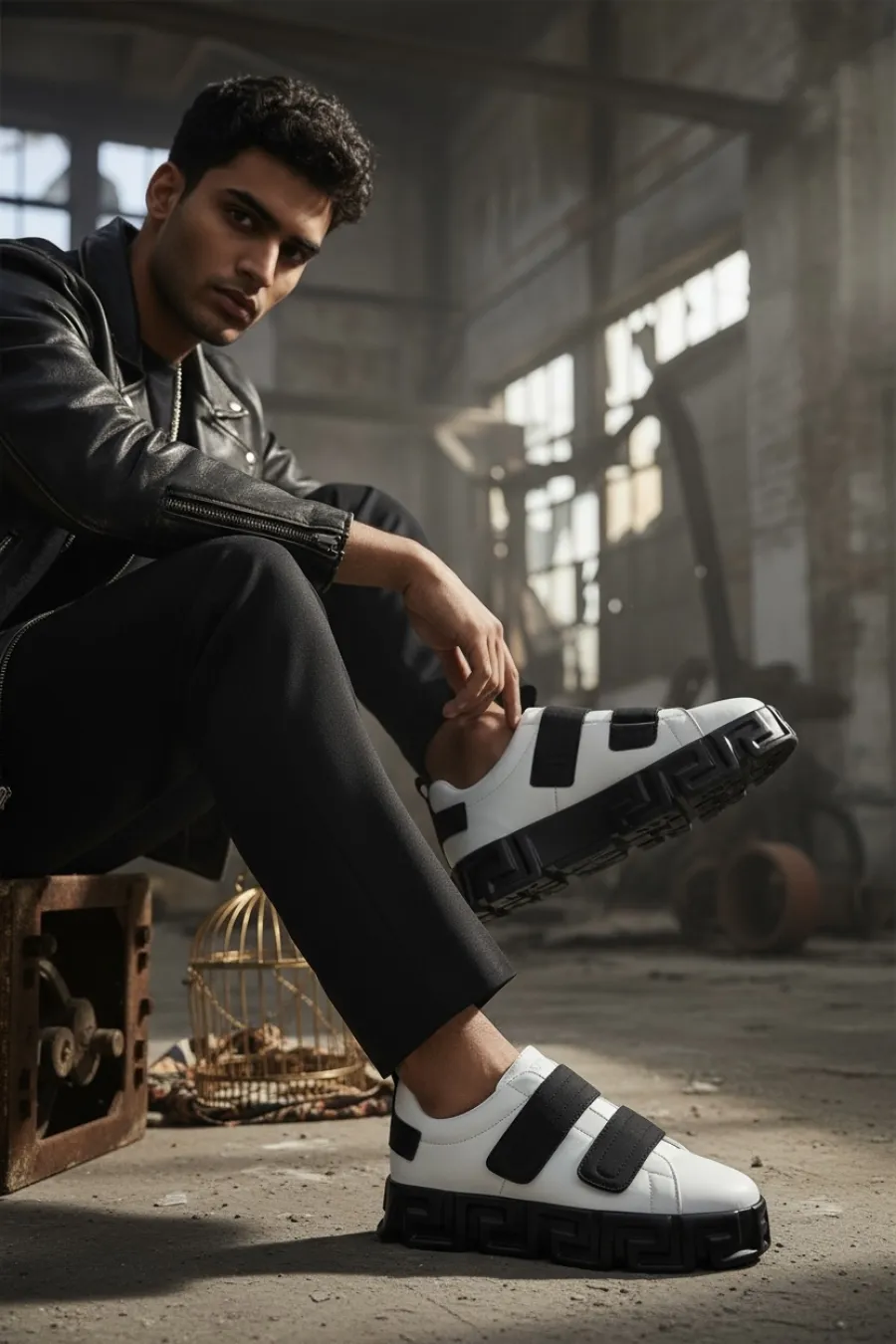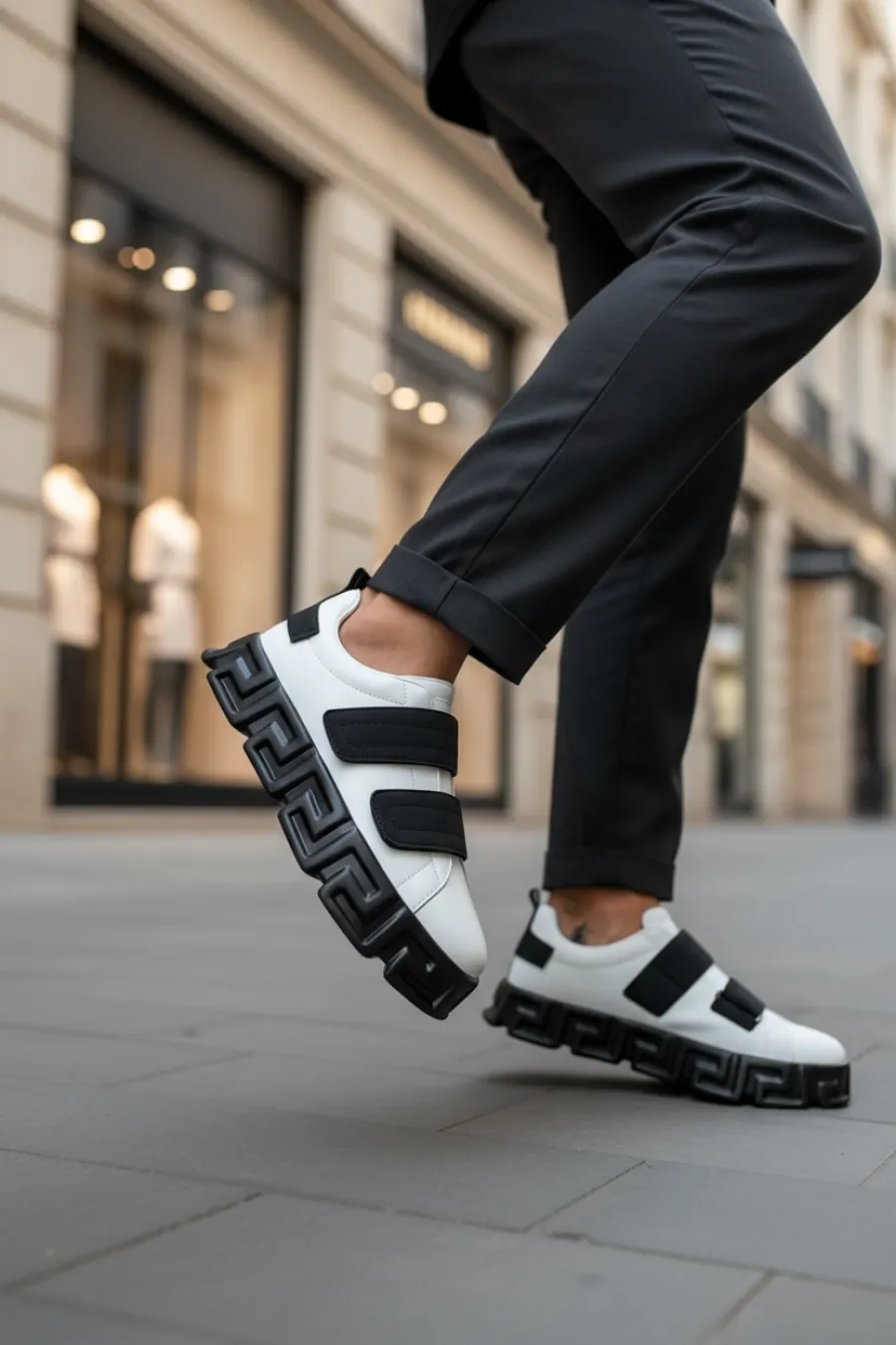 Adidasi barbati VSC Greca albi cu negru, cu arici 092