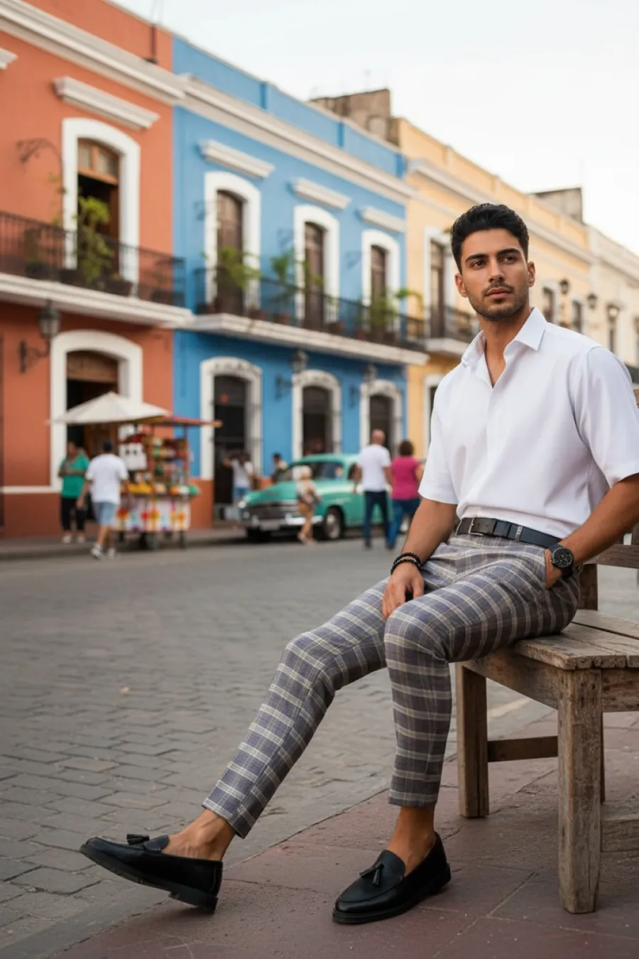 Pantaloni barbati eleganti regular fit in carouri B1553 Z4-2