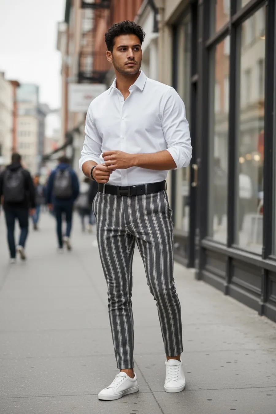 Pantaloni barbati casual regular fit in dungi B1547 117-1