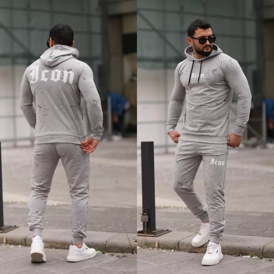 Trening barbati slim fit gri deschis, Pantaloni + Hanorac, 13351