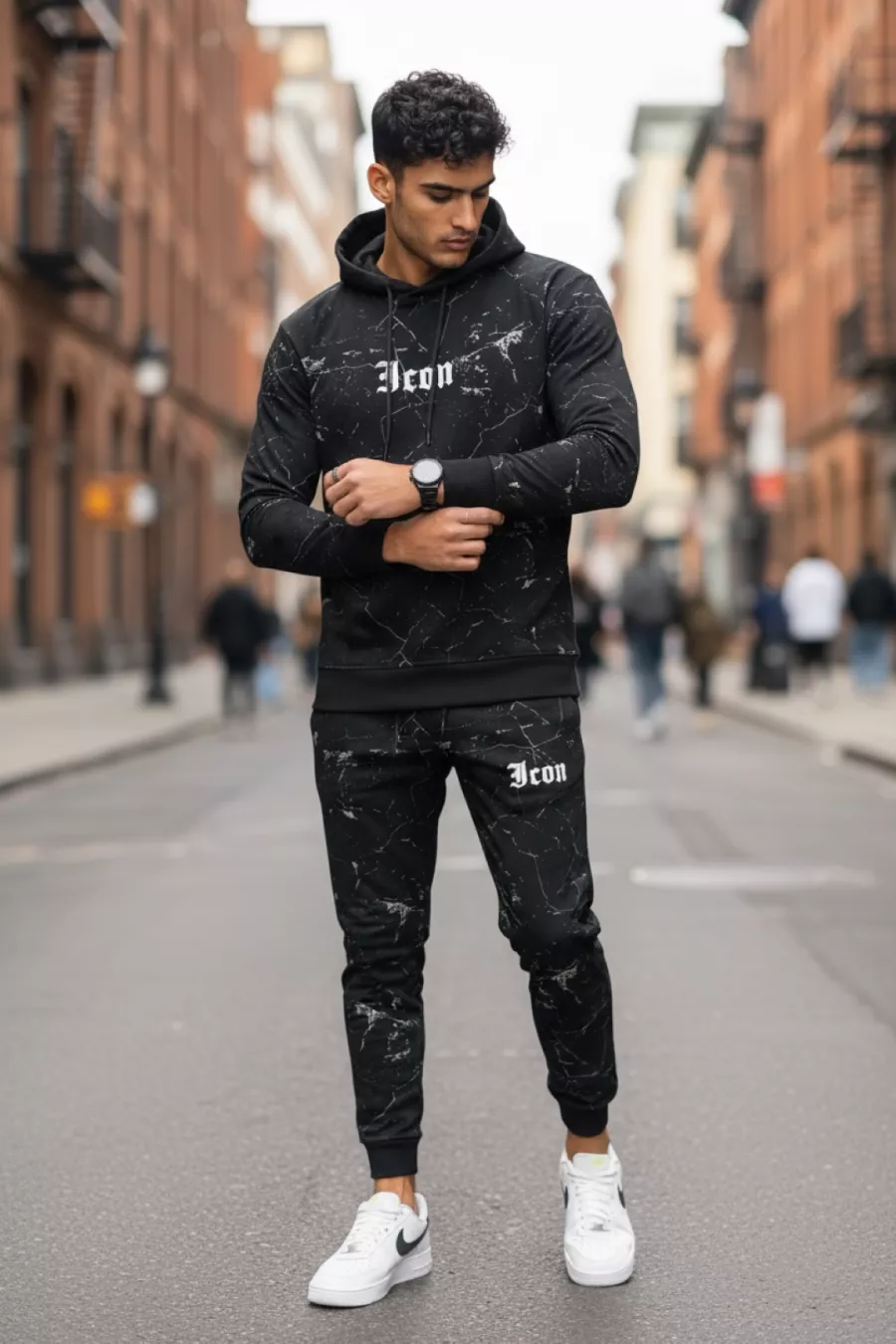 Trening barbati slim fit negru, Pantaloni + Hanorac, 13380