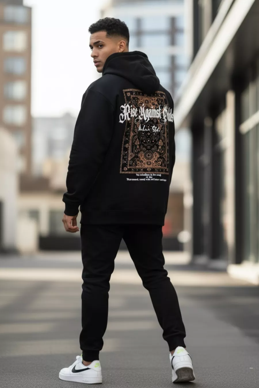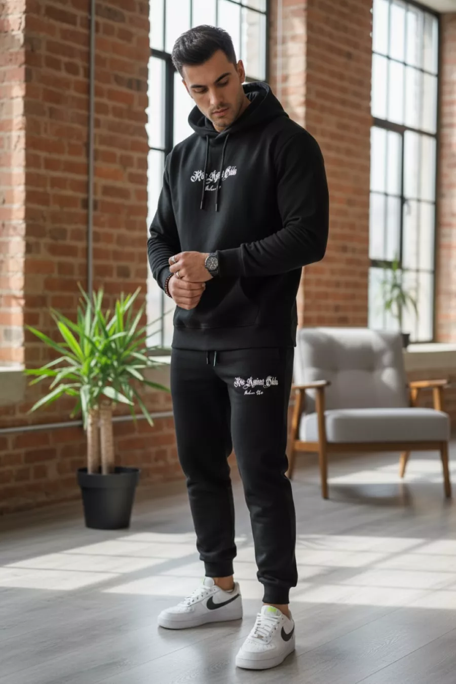 Trening barbati slim fit negru, Pantaloni + Hanorac, 13400
