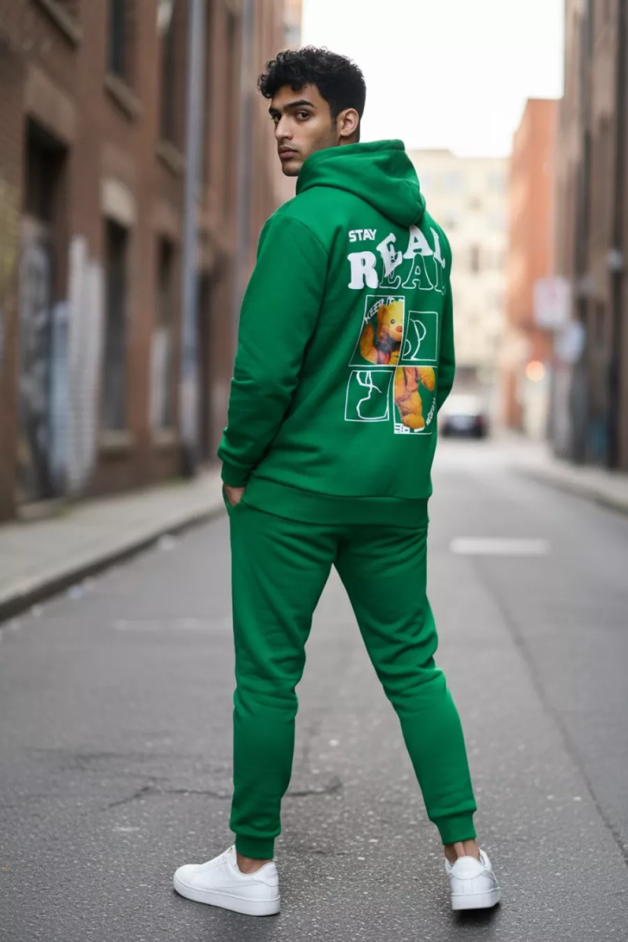 Trening barbati slim fit verde, Pantaloni + Hanorac, 13360
