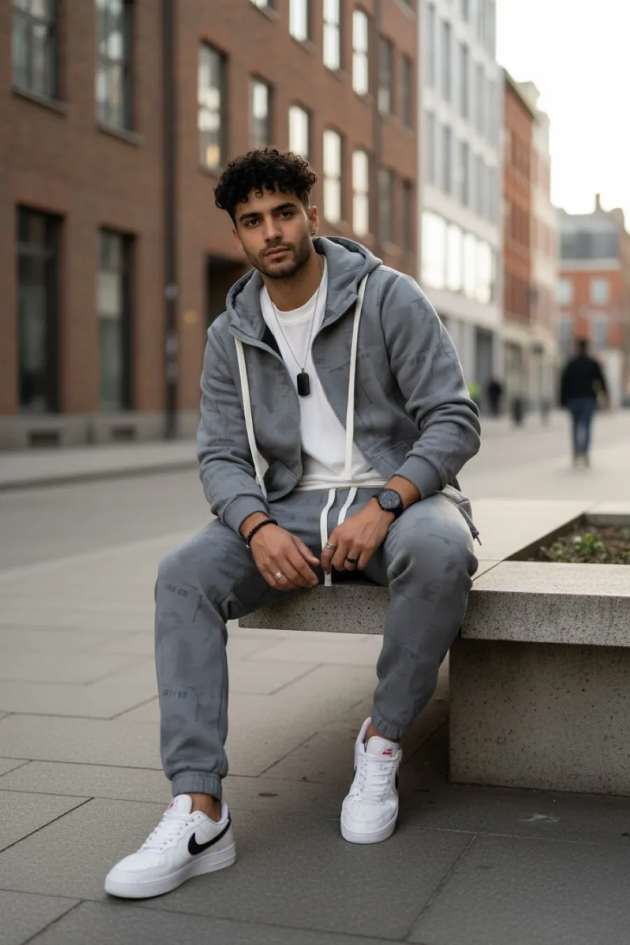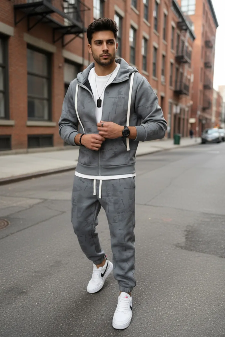 Trening barbati slim fit gri, Pantaloni + hanorac 167 32-2.1