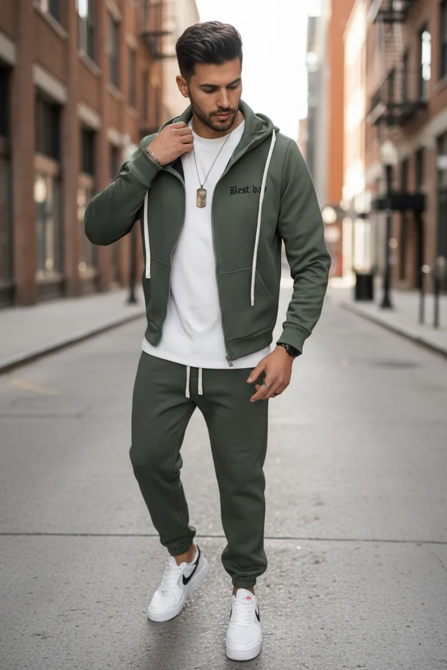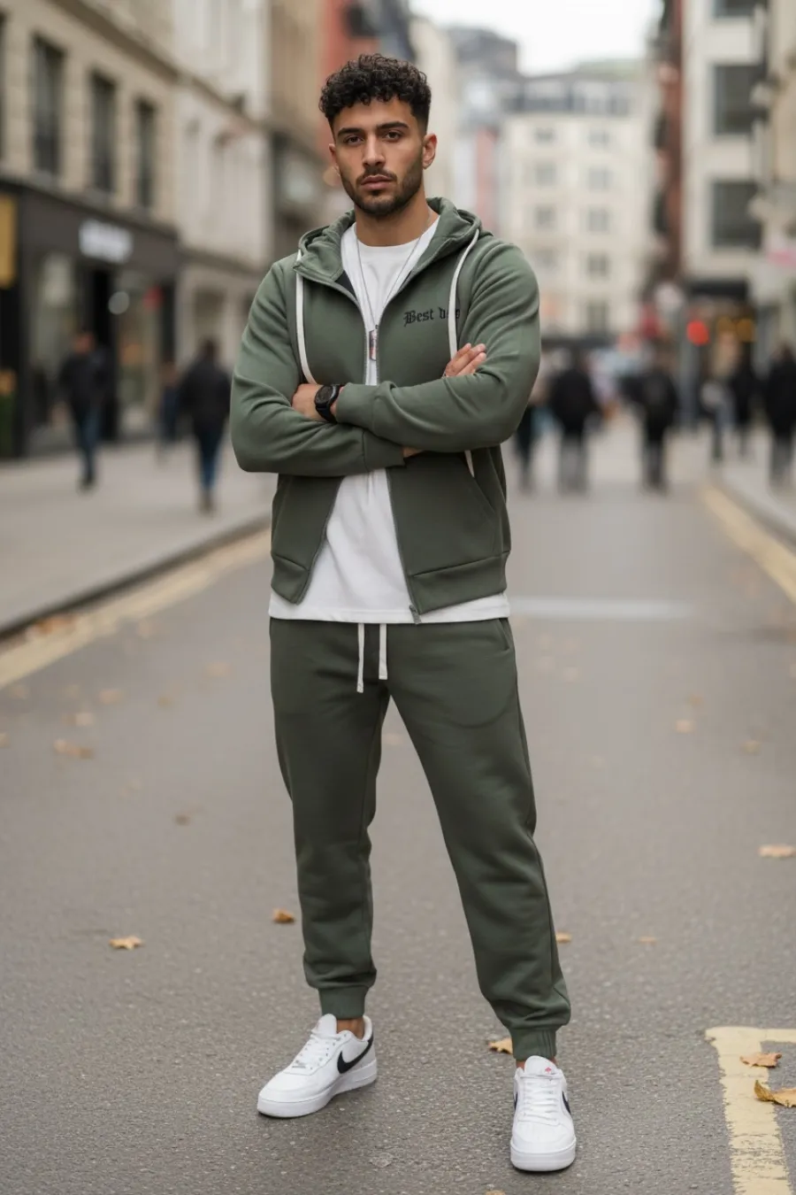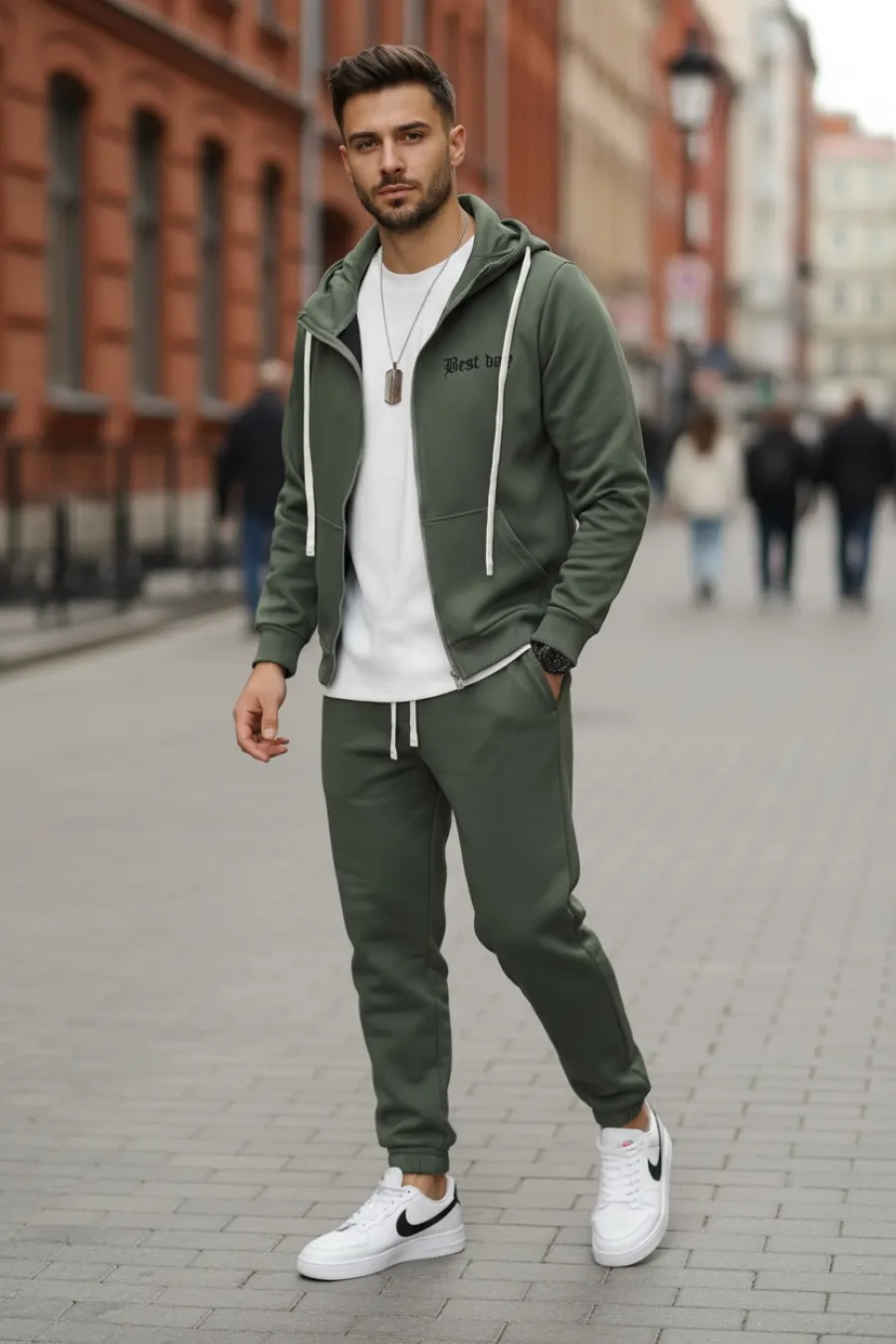 Trening barbati slim fit kaki , Pantaloni + hanorac 168