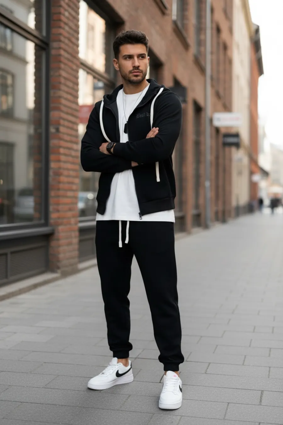 Trening barbati slim fit negru, Pantaloni + hanorac 168