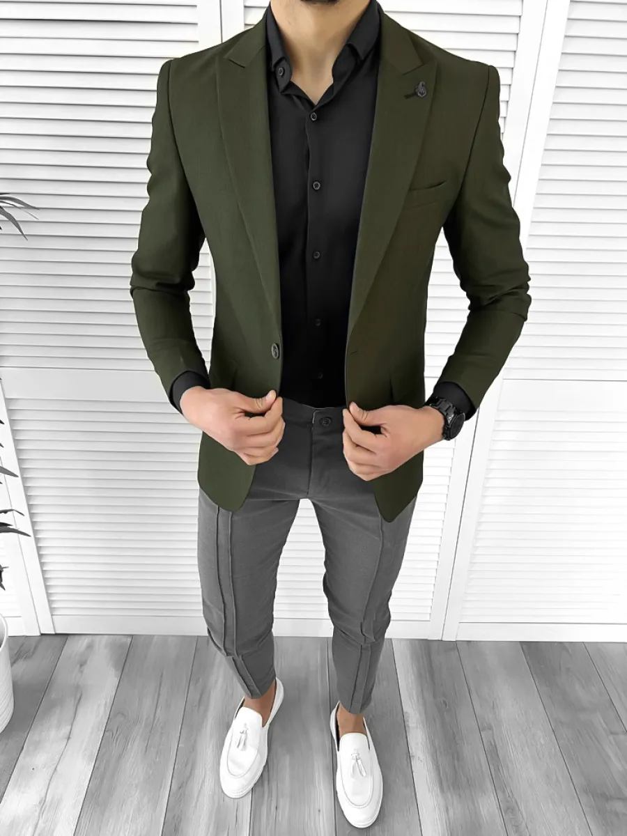 Sacou barbati slim fit kaki 10204 O2-2.3