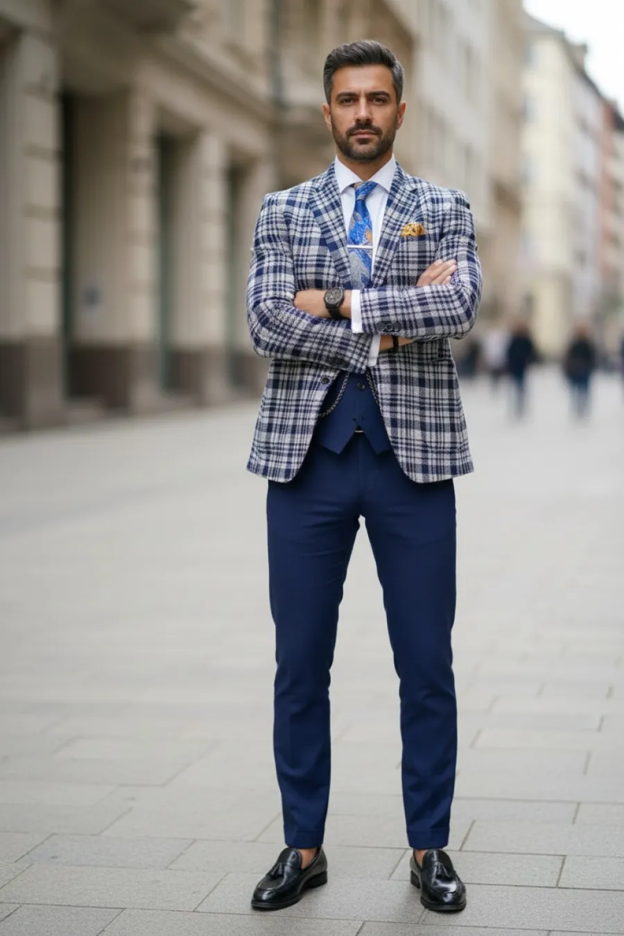 Sacou barbati in carouri slim fit bleumarin B5303 16-1.2