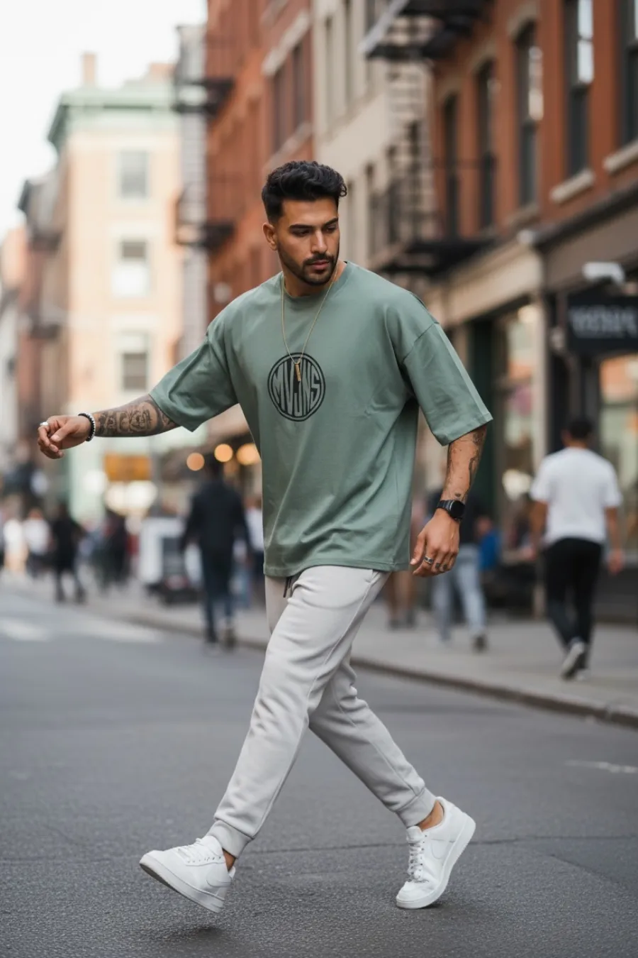 Tricou barbati vernil, cu imprimeu pe spate, oversize 11814 D3-4.1