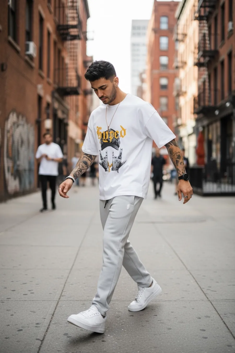 Tricou barbati alb, cu imprimeu, oversize Y171 24-4.1